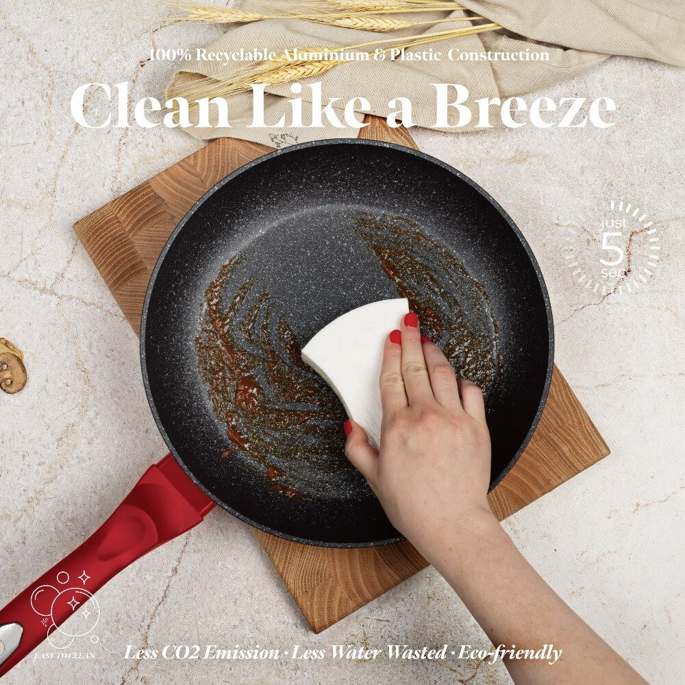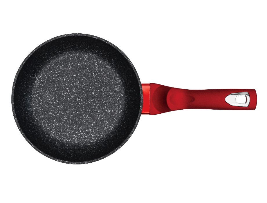 - univerzálna panvica s mramorovým povrchom a ergonomickou rukoväťou v atraktívnom dizajne - 3-vrstvový povrch s mramorovým dizajnom charakteristický svojou dokonalou nepriľnavosťou, pripravované potraviny sa nepripaľujú a vďaka tomu sa panvica veľmi jednoducho čistí - zároveň je vhodný na zdravé varenie s minimom tuku alebo oleja, v závislosti na použitých surovinách pokojne aj bez jedinej kvapky tuku - vnútorná aj vonkajšia vrstva neobsahujú žiadne škodliviny, výsledné pokrmy tak nestrácajú varením svoje vitamíny - jadro panvice z kovaného hliníka vyniká vysokou stabilitou a perfektnou tepelnou vodivosťou, takže sa nielen rýchlo a rovnomerne zahreje po celom povrchu, veľmi ľahko aj teplotu pri varení udržuje - zosilnené nerezové Turbo indukčné dno pre maximálnu efektivitu prípravy pokrmu - ergonomicky tvarovaná rukoväť má protišmykovú mäkčenú úpravu, vďaka ktorej skvele padne do ruky, dobre sa s ňou manipuluje a umožní pevný a bezpečný úchop - vďaka izolačným prvkom zostáva rukoväť po celú dobu varenia chladná a nepáli - telo panvy je zakončené zosilneným okrajom pre lepšiu odolnosť voči nárazom - vhodná na všetky druhy sporákov aj na indukciu - vhodná tiež na zapekanie v rúre do maximálnej teploty 160°C - vďaka nadštandardným nepriľnavým vlastnostiam je čistenie rýchle a nenáročné, stačí umyť teplou vodou a hubkou - možno umývať aj v umývačke riadu - ideálny pre každodenné varenie, dusenie a smaženie akýchkoľvek pokrmov - ECOfriendly, použité materiály neobsahujú žiadne škodliviny ako Pfoa, olovo ani kadmium - vysoko atraktívny moderný dizajn s jedinečnou metalickou vonkajšou farbou - panvica je vďaka svojmu perfektnému vzhľadu vhodná aj na priame servírovanie pokrmov na stôl - rozmery: priemer horného okraja 24 x výška 4,8 cm - kolekcia: Burgundy Metallic Line Medzi nenahraditeľné vybavenie kuchyne patria nielen poháre, hrnce a príbory, ale rozhodne aj panvice. Prípravu obľúbených pokrmov vám uľahčia a práca s nimi vám pôjde od ruky! Bez kvalitnej panvice by váš talent nebol v kuchyni plne využitý! Zaobstarajte si panvicu na vyprážanie, pečenie alebo grilovanie mäsa, zeleniny a ďalších surovín. Príprava jedla bude rýchlejšia a vy budete mať na tanieri zdravé pokrmy. Druhy kuchynských panvíc V našej ponuke panvíc nájdete rôzne druhy panvičiek pre široké možnosti využitia. S grilovacou panvicou si doma pripravíte mäso a zeleninu ako z grilu. Hlboké panvice využijete na varenie cestovín a polievok. Palacinkové panvičky sú ideálne na prípravu tenkých palaciniek, lievanečníkové panvice na prípravu lievancov a servírovacie panvice budú zdobiť slávnostnú tabuľu a udržiavať jedlo v teple. Univerzálny wok je skvelý na prípravu ázijských pokrmov. Vo woku rýchlo usmažíte mäso a zeleninu pri vysokých teplotách a jedlo bude mať vynikajúcu chuť a arómu. Vo vašej kuchyni sa bude určite vynímať panvička vo farbe červená!