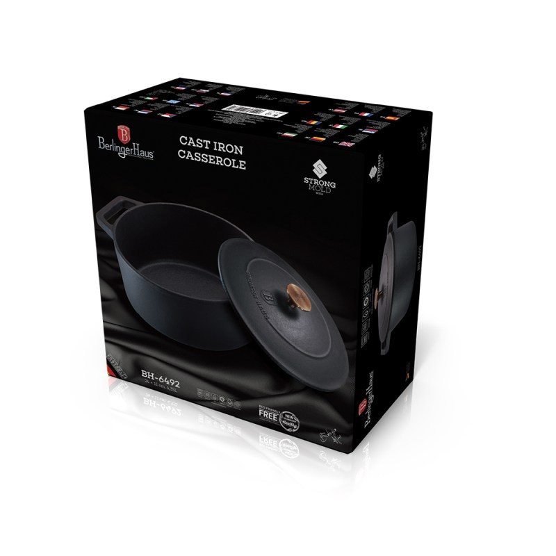 - materiál: liatina - pokrievka s nerezovým úchytom v rosegold farbe - masívne liatinové rukoväte - rýchlo a rovnomerne rozvádza teplo po celom povrchu - vynikajúca odolnosť voči vysokým teplotám - vhodný na všetky druhy sporáka aj na indukciu - vhodný do rúry až do 280 ° C - rozmery: 24 x 11 cm - objem: 4,35 litra - váha pokrievky 1,3 kg - váha hrnca 3,2 kg - vnútorný priemer dna 23,5 cm Hľadáte do domácnosti kvalitný pekáč, s ktorým budete môcť pripravovať tie najchutnejšie jedlá? Pekáč od overeného výrobcu BERLINGERHAUS vás v kuchyni nesklame! Pripravovať v ňom môžete rôzne druhy jedál, ako je napríklad pečené mäso, zeleninu, ryby alebo sladké pečivo . Jeho čierna farba je univerzálna a vynímať sa bude v každej kuchyni! Pekáč je praktickým kuchynským riadom, v ktorom môžete jednoducho preniesť jedlo z rúry na stôl a priamo z neho servírovať. Pekáč liatinový s pokrievkou 24 cm Black Rose Collection sa skvele hodí na pečenie pokrmov Jednou z najväčších výhod pekáča je, že vám ušetrí veľa času a energie . Nemusíte sa trápiť s varením na platni a dohliadaním na pokrm, ktorý sa pomaly varí. Stačí všetky suroviny vložiť do pekáča a potom s ním rovno do rúry. Kvalitný materiál, z ktorého je pekáč vyrobený – liatina zaistí, že teplota bude v pekáči rozvádzaná rovnomerne. Riad odolá vysokým teplotám a vďaka kvalitnému materiálu je tiež ľahko umývateľný .
