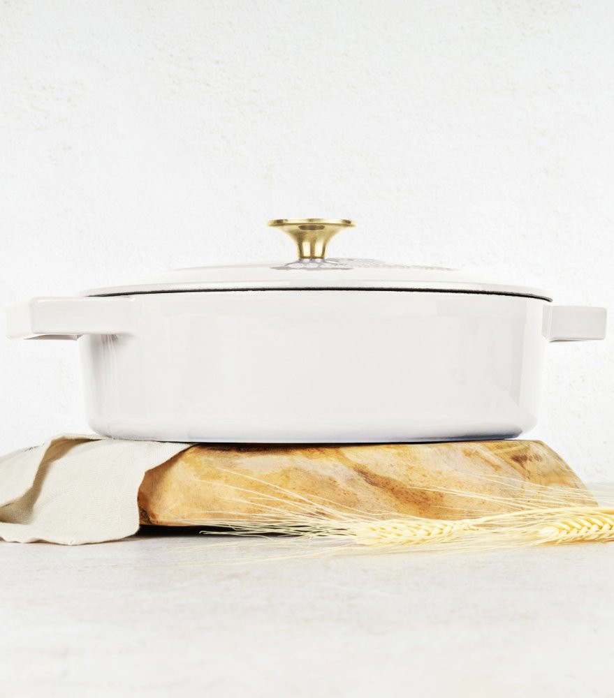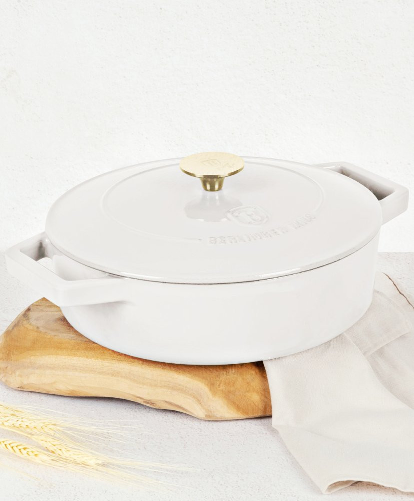 Liatinový pekáč s pokrievkou Berlingerhaus BH-6530 z kolekcie Sahara je elegantnou a praktickou voľbou do moderných kuchýň. Tento štýlový a výkonný pekáč je navrhnutý tak, aby spĺňal všetky vaše potreby pri pečení. S jeho robustnou konštrukciou a moderným designom zvládnete ľahko a rýchlo pripraviť akýkoľvek pokrm. Kľúčové vlastnosti - Materiál: Ťažká liatina s dvojvrstvovým smaltovaným povrchom pre dlhú životnosť a ľahké čistenie. - Veľkosť: 26 cm, ideálna na prípravu väčších porcií. - Objem: 2,57 litra, čo z neho robí ideálnu veľkosť na prípravu väčších porcií. - Design: Elegantná krémová farba, ktorá dodá vašej kuchyni moderný vzhľad. - Funkcia: - Rovnomerné rozloženie tepla vďaka ťažkej liatinovej konštrukcii. - Vhodné na použitie v rúre aj na sporáku. - Indukčné dno na použitie na všetkých typoch varných dosiek. - Dvojvrstvový smaltovaný povrch odolný proti škvrnám a poškriabaniu. Prečo si ho zamilujete - Multifunkčné použitie: Ideálne na prípravu rôznych pokrmov, od pečenia po dusenie. - Jednoduché čistenie: Smaltovaný povrch zaisťuje, že sa jedlo neprichytí a pekáč sa ľahko čistí. - Moderný dizajn: Elegantná krémová farba dodá vašej kuchyni luxusný vzhľad. Charakteristiky a výhody - Ergonomické rukoväte: Pohodlný a bezpečný úchop pri varení. - Odolný materiál: Liatina s dvojvrstvovým smaltovaným povrchom pre dlhú životnosť. - Indukčné dno: Umožňuje použitie na všetkých typoch varných dosiek.