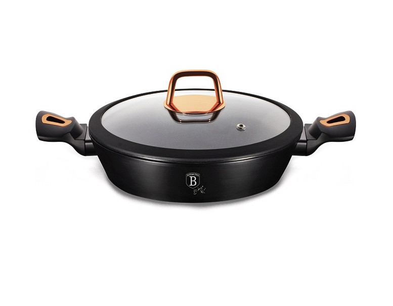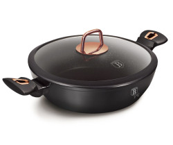 - materiál: kovaný hliník s mramorovým povrchom - priemer: 28 cm - výška: 7,5 cm - objem: 3,8 l - farba: čierna/rosegold - žiaruvzdorná pokrievka so silikónovým okrajom - 3-vrstvový nepriľnavý povrch s mramorovým dizajnom - ergonomické mäkčené rukoväte - TURBO indukčné dno - vhodné na všetky druhy ohrevu aj na indukciu - vhodné do umývačky riadu - jednoduché čistenie! - úspora energie až 35% - elegantný dizajn - ECO FRIENDLY - neobsahuje PFOA, Olovo ani Kadmium Hľadáte do domácnosti kvalitný pekáč, s ktorým budete môcť pripravovať tie najchutnejšie jedlá? Pekáč od overeného výrobcu BERLINGERHAUS vás v kuchyni nesklame! Pripravovať v ňom môžete rôzne druhy jedál, ako je napríklad pečené mäso, zeleninu, ryby alebo sladké pečivo . Jeho čierna farba je univerzálna a vynímať sa bude v každej kuchyni! Pekáč je praktickým kuchynským riadom, v ktorom môžete jednoducho preniesť jedlo z rúry na stôl a priamo z neho servírovať. Pekáč s pokrievkou s mramorovým povrchom 28 cm Black Rose Collection sa skvele hodí na pečenie pokrmov Jednou z najväčších výhod pekáča je, že vám ušetrí veľa času a energie . Nemusíte sa trápiť s varením na platni a dohliadaním na pokrm, ktorý sa pomaly varí. Stačí všetky suroviny vložiť do pekáča a potom s ním rovno do rúry. Kvalitný materiál, z ktorého je pekáč vyrobený – mramor zaistí, že teplota bude v pekáči rozvádzaná rovnomerne. Riad odolá vysokým teplotám a vďaka kvalitnému materiálu je tiež ľahko umývateľný .
