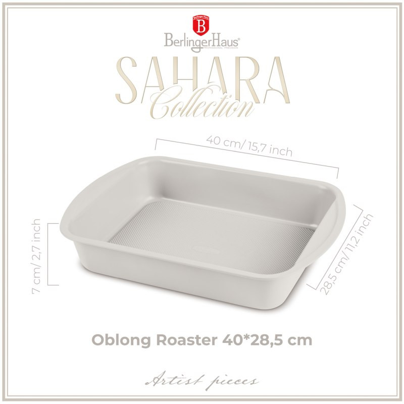 Doprajte si pečenie s dokonalým výkonom a sofistikovaným vzhľadom vďaka plechu na pečenie s titánovým povrchom z kolekcie Sahara Collection. Vhodný pre každodenné aj náročné kulinárske úlohy - odolný, elegantný a ekologicky šetrný. Technické parametre: • Materiál: uhlíková oceľ s titánovým nepriľnavým povlakom – zaručuje dlhú životnosť a jednoduchú údržbu • Rozmery: 40 × 28,5 × 7 cm – priestranný pre väčšie pečiace porcie • Farba: matná krémová – špeciálna metalická edícia s luxusným vzhľadom • NOVÝ nepriľnavý spodný povrch – pre lepšiu stabilitu a priľnavosť • Titánový nepriľnavý povlak – minimalizuje prichytávanie a uľahčuje čistenie • Vyrobené z ťažkej ocele – robustné a rovnomerné pečenie • Štýlový a elegantný dizajn s metalickou vonkajšou farbou – spojenie funkčnosti a estetiky • Ľahko sa čistí – maximálne pohodlie pri používaní • Ekologicky šetrné – bez PFOA, olova a kadmia, šetrné k vášmu zdraviu i prírode Objavte kvalitu a štýl v jednom s plechom Sahara Collection – pečenie s noblesou a efektivitou.