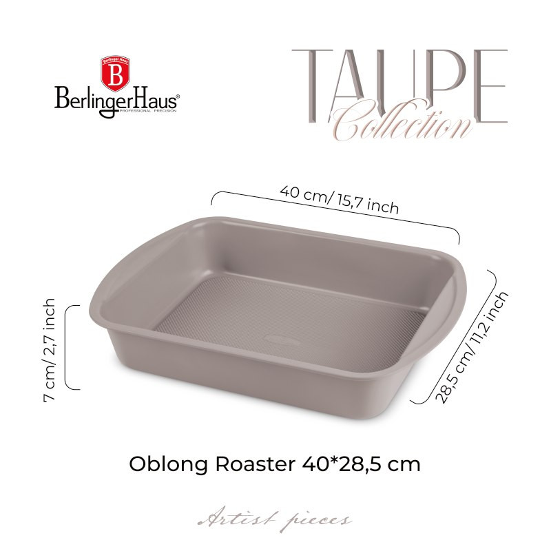 Doprajte si pečenie s dokonalým výkonom a sofistikovaným vzhľadom vďaka plechu na pečenie s titánovým povrchom z kolekcie Taupe Collectio. Vhodný pre každodenné aj náročné kulinárske úlohy - odolný, elegantný a ekologicky šetrný. Technické parametre: • Materiál: uhlíková oceľ s titánovým nepriľnavým povlakom – zaručuje dlhú životnosť a jednoduchú údržbu • Rozmery: 40 × 28,5 × 7 cm – priestranný pre väčšie pečiace porcie • Farba: matná šedohnedá – špeciálna metalická edícia s luxusným vzhľadom • NOVÝ nepriľnavý spodný povrch – pre lepšiu stabilitu a priľnavosť • Titánový nepriľnavý povlak – minimalizuje prichytávanie a uľahčuje čistenie • Vyrobené z ťažkej ocele – robustné a rovnomerné pečenie • Štýlový a elegantný dizajn s metalickou vonkajšou farbou – spojenie funkčnosti a estetiky • Ľahko sa čistí – maximálne pohodlie pri používaní • Ekologicky šetrné – bez PFOA, olova a kadmia, šetrné k vášmu zdraviu i prírode Objavte kvalitu a štýl v jednom s plechom Taupe Collection – pečenie s noblesou a efektivitou.