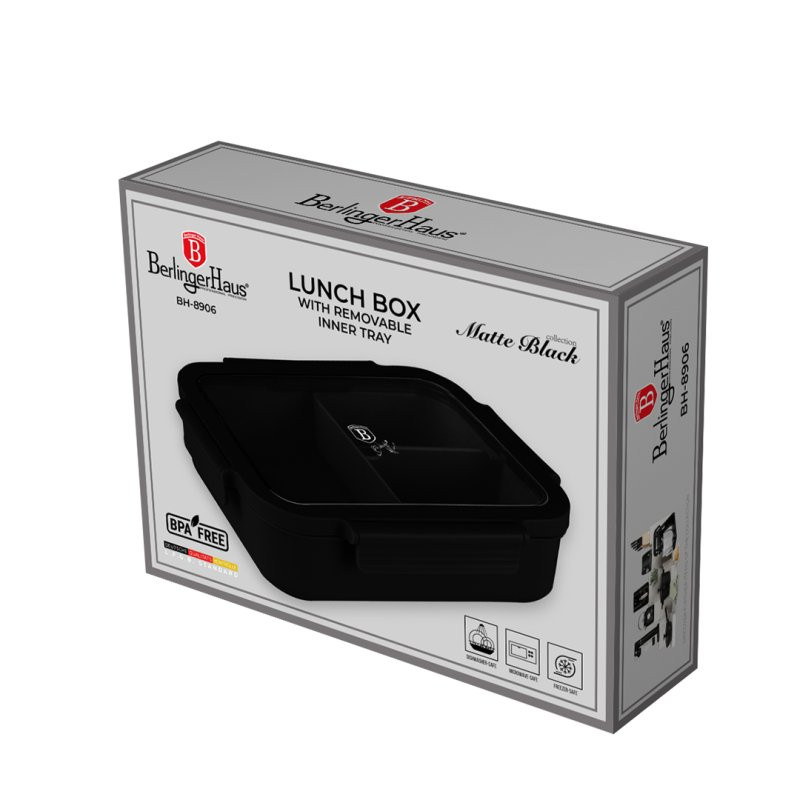 Prenosný box na obed a desiatu s vekom na klip 1,3 l Matte Black Collection BerlingerHaus BH-8906