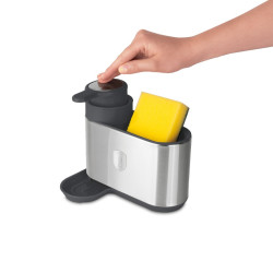 Praktický dávkovač umývacieho prostriedku 2 v 1 s držiakom na špongiu udržuje priestor okolo umývadla čistý a uprataný. Integrovaný držiak na špongiu s odkvapkávačom zachytáva prebytočnú vodu a zabraňuje vzniku neporiadku na pracovnej doske. Hladká pumpička dávkovača umožňuje presné dávkovanie umývacieho prostriedku a vďaka jednoduchému plneniu je používanie rýchle a pohodlné. Matný antracitový povrch je odolný voči odtlačkom prstov a hodí sa do modernej kuchyne.