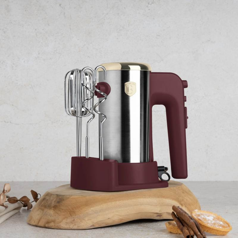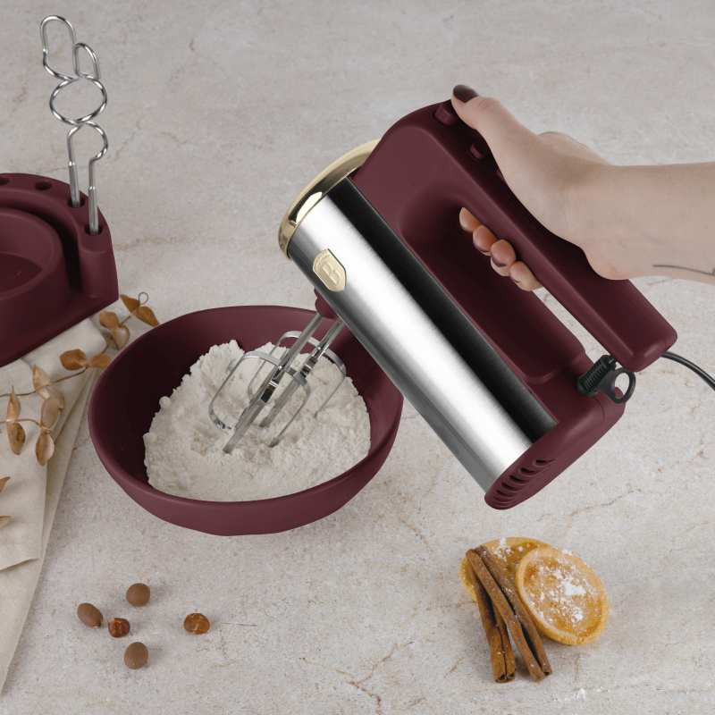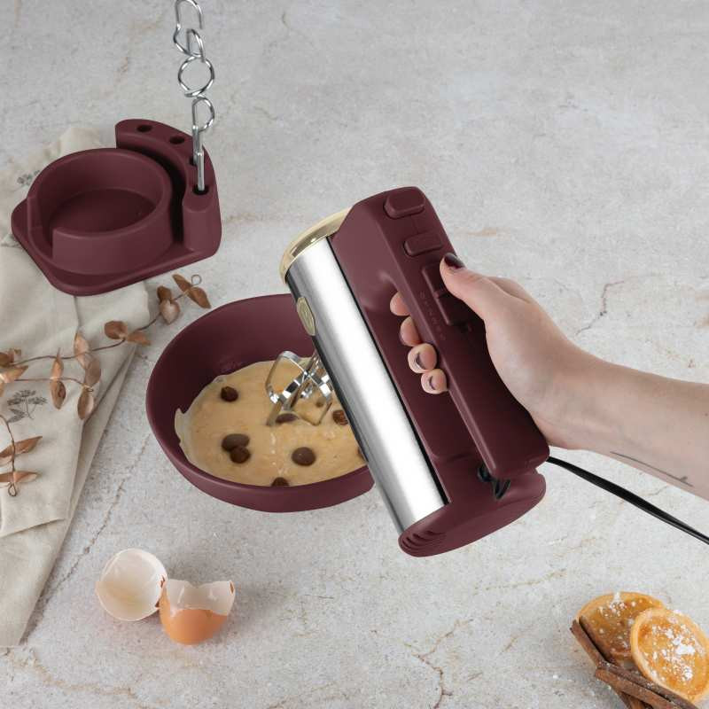 Praktický a elegantný pomocník do každej kuchyne! Tento ručný šľahač v matnej bordovej farbe kombinuje výkon, funkčnosť a štýlový dizajn. Vďaka stojanu a možnosti uloženia príslušenstva šetrí miesto a je vždy po ruke. Špecifikácia: Materiál: Plast a nerezová oceľ Napätie: 220–240 V, 50/60 Hz Príkon: 300 W Farba: Matná bordová Obsah balenia: 2× šľahacia metla 2× hnetacie háky na cesto Stojan na jednoduché skladovanie Vlastnosti: 5 rýchlostných stupňov – prispôsobte výkon podľa potreby Funkcia Turbo – pre maximálny výkon pri náročnejšej práci Regulácia otáčok – presné spracovanie surovín Úložný priestor pre kábel – úhľadné skladovanie Kompaktný stojan – šľahač aj príslušenstvo na jednom mieste Elegantný, výkonný a praktický – ideálna voľba na každodenné pečenie i varenie.