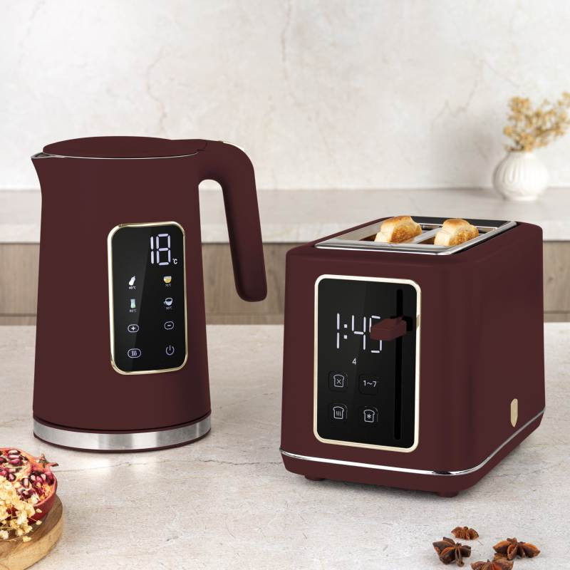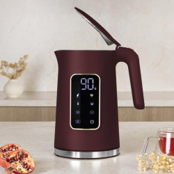 Táto moderná digitálna rýchlovarná kanvica v elegantnom čierno-striebornom prevedení je ideálnou voľbou pre všetkých, ktorí si chcú ľahko a rýchlo pripraviť horúci nápoj presne podľa svojej chuti. Vďaka šikovným funkciám, prehľadnému displeju a užívateľsky prívetivému ovládaniu ponúka pohodlie pri každodennom používaní. Špecifikácia: Materiál: Nerezová oceľ vo vnútri, plast zvonku Objem: 1,7 l Napätie: 220–240 V, 50/60 Hz Príkon: 2200 W Farba: Matná bordová Vlastnosti: Digitálny displej s bielymi nápismi – prehľadné zobrazenie a jednoduchá orientácia 4 prednastavené teploty (40 °C, 70 °C, 80 °C, 90 °C) – ideálne na prípravu rôznych druhov čajov a nápojov Funkcia rýchleho ohrevu – ušetrí čas aj energiu Otočná základňa o 360 ° - jednoduché použitie pre pravákov aj ľavákov Dvojitá stena – vonkajšia časť zostáva chladná na dotyk 8 dotykových tlačidiel – intuitívne ovládanie Skryté výhrevné teleso z nerezovej ocele - zaisťuje dlhú životnosť Funkcia udržiavania teploty – nápoj zostane teplý aj po uvarení Automatické vypnutie pri dosiahnutí varu Ochrana proti vyvareniu – pre bezpečnú prevádzku Praktický a štýlový spotrebič, ktorý sa stane nepostrádateľným pomocníkom vo vašej kuchyni – ideálny pre čajové rituály, kávu aj každodenné pohodlie.