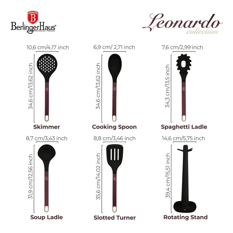 - Sada kuchynského náradia so stojanom, 6 ks, matná bordeaux