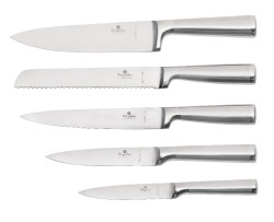 - Materiál: nerezová oceľ 3cr13 s rukoväťou v saténovom a zrkadlovom lesku.- Kuchársky nôž 20 cm- Nôž na krájanie 20 cm- Nôž na chlieb 20 cm- Užitkový nôž 12,5 cm- Nôž na okrajovanie 9 cm- Ostriaci nôž- Stojan BAMBOO- Farba: nerezová oceľ/čierna- ČEPELE VYROBENÉ NOVOU VÝROBNOU TECHNOLÓGIOU- Bambusový blok- Laserom naostrené čepele- Vyrobené z jedného kusu- Ergonomická rukoväť- Dizajn s ochranou prstov