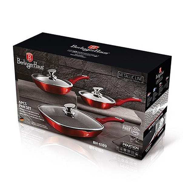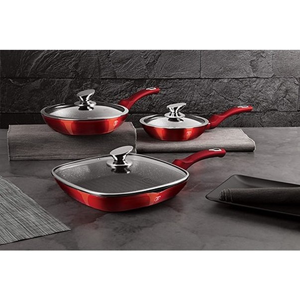 Sada panvíc s mramorovým povrchom 6 ks Burgundy Metallic Line. Táto sada panvíc s pokrievkami je vyrobená z kovaného hliníka, ktorý zaisťuje vysokú kvalitu a odolnosť. Sada obsahuje tri panvice s pokrievkami: panvicu s rozmermi 20x4,5 cm s objemom 1,0 litra, panvicu s rozmermi 24x4,8 cm s objemom 1,7 litra a grilovaciu panvicu s rozmermi 28x28x4,1 cm s objemom 2,1 litra. Metalická vínová farba a elegantný dizajn dodávajú tejto sade moderný vzhľad, ktorý sa hodí do každej kuchyne. Kľúčové vlastnosti: - Materiál: Kovaný hliník. - Obsah sady: Panvica s pokrievkou 20x4,5 cm (1,0 liter), panvica s pokrievkou 24x4,8 cm (1,7 litra) a grilovacia panvica s pokrievkou 28x28x4,1 cm (2,1 liter). - Farba: Metalická vínová. - Povrch: 3vrstvový nepriľnavý mramorový povlak. - Rukoväť: Ergonomická rukoväť Soft-touch. - Pokrievka: Sklenené pokrievky s dizajnovou rukoväťou. - Kompatibilita: Vhodné pre všetky typy varných dosiek vrátane indukčných (úspora energie). - Design: Elegantná kovová vonkajšia farba s možnosťou zavesenia. - Ekologicky šetrné: Bez PFOA, olova a kadmia. - Údržba: Ľahko sa čistí (vyrobené z účinných a hygienických materiálov). Prečo si ju zamilujete: Kvalita: Vyrobené z kovaného hliníka pre dlhú životnosť. Štýlový dizajn: Metalická vínová farba a elegantný dizajn dodajú vašej kuchyni moderný vzhľad. Praktické použitie: Vhodné pre všetky typy varných dosiek vrátane indukčných. Jednoduchá údržba: Nepriľnavý povrch uľahčuje čistenie. Vylepšite svoje varenie s touto sadou panvíc s pokrievkami a užite si radosť z prípravy jedla každý deň.