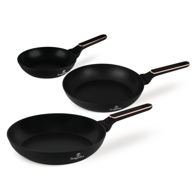 Sada panvíc s titánovým povrchom 3 ks Black Rose Collection BERLINGERHAUS BH-8360 Varte s eleganciou, ktorá berie dych! Táto luxusná sada panvíc v matnej čierno-ružovo-zlatej farbe prinesie do vašej kuchyne štýl, výkon aj radosť z každého varenia. Či už pripravujete rýchle raňajky alebo slávnostnú večeru – s panvicami Black Rose Collection bude každé jedlo majstrovským dielom. Materiál: kovaný hliník s nepriľnavým povrchom TitanPro Farba: matná čierno-ružovo-zlatá Obsah sady: • Panvica o 20 × 4,5 cm – 1,0 l • Panvica o 24 × 4,8 cm – 1,7 l • Panvica o 28 × 5,2 cm – 2,4 l Vychytávky, ktoré si zamilujete: • 3× odolný nepriľnavý povrch TitanPro – varenie bez pripaľovania a takmer bez oleja • Ergonomická rukoväť s mäkkým dotykom – chladná aj pri vysokých teplotách • Indukčné Turbo dno – rovnomerné a rýchle zahriatie • Kompatibilný so všetkými typmi varných dosiek (vrátane indukcie) • Minimalistický a nadčasový dizajn • Ekologicky šetrné – bez PFOA, olova a kadmia • Jednoduché čistenie – ušetrí čas aj námahu Tri veľkosti, nespočet možností – táto sada panvíc je stvorená pre váš každodenný kuchynský úspech.