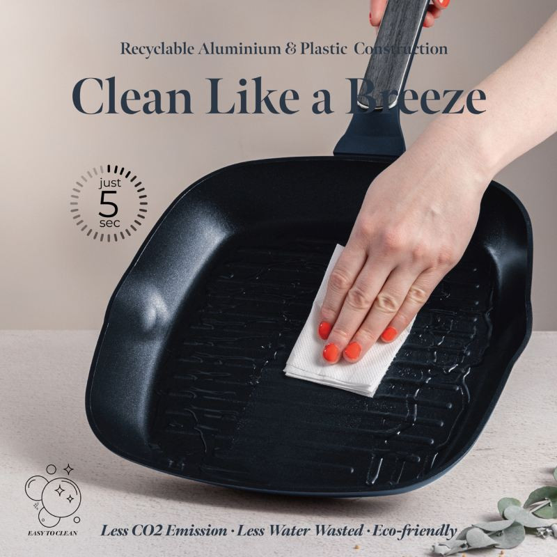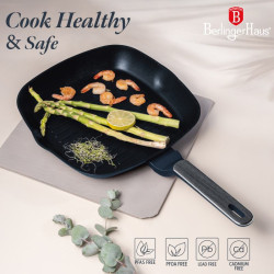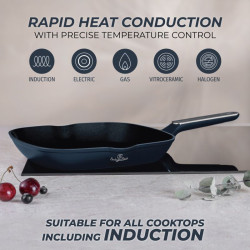 Súprava panvíc s titánovým povrchom 3 ks Deep Sea Collection BERLINGERHAUS BH-8380 Vstúpte do sveta profesionálneho varenia s exkluzívnou sadou Deep Sea Collection, ktorá kombinuje eleganciu matnej modrej s prírodnou šedou farbou dreva. Táto sada ponúka nielen krásny dizajn, ale aj maximálnu funkčnosť – ideálni spoločníci na každodennú i slávnostnú prípravu jedál. Materiál: kovaný hliník s nepriľnavým povrchom TitanPro Farba: matná modrá, šedá drevená Obsah sady: • Panvica o 20 × 4,5 cm – 1,0 l • Panvica o 24 × 4,8 cm – 1,7 l • Grilovacia panvica o 28 × 4,1 cm – 2,1 l Vlastnosti, ktoré nadchnú: • 3× odolný nepriľnavý povrch TitanPro – varenie bez pripaľovania as minimom tuku • Ergonomická rukoväť s mäkkým povrchom, elegantná strieborná vložka a šedé drevené detaily, ktoré zostávajú príjemne chladné • Moderný minimalistický dizajn a matný povrch pre štýlovú kuchyňu • Indukčné turbo pre rýchly a efektívny ohrev • Vhodné na všetky typy varných dosiek • Ekologicky šetrné, bez PFOA, olova a kadmia • Jednoduché čistenie, ktoré šetrí váš čas Táto sada panvíc je stvorená pre tých, ktorí chcú v kuchyni nielen variť, ale tvoriť s radosťou a ľahkosťou. S Deep Sea Collection sa každý váš pokrm premení na majstrovské dielo.