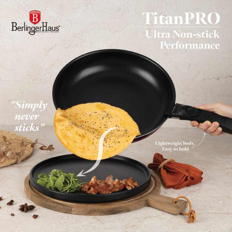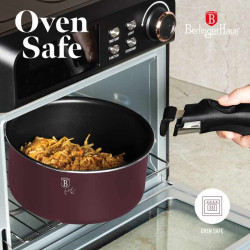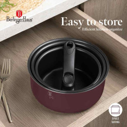 Sada riadu s odnímateľnou rukoväťou 12 ks Leonardo Collection – maximálna praktickosť v elegantnom dizajne Chcete ušetriť miesto v kuchyni , ale zároveň mať všestrannú sadu riadu? Leonardo Collection – Matt Bordeaux je dokonalou kombináciou funkčnosti a štýlu. Prečo si ju obľúbite? Praktická odnímateľná CLICK rukoväť – ľahké prepínanie medzi kusmi riadu počas varenia Mramorový 3vrstvový povrch – dokonalá nepriľnavosť, žiadne pripekanie Turbo indukčné dno – efektívne zahrievanie a úspora energie Všestranné využitie - vhodné na sporák, do rúry (do 220 ° C), na servírovanie aj skladovanie Úspora miesta – riad je možné ľahko stohovať a skladovať na minimálnom priestore Obsah sady: Panvica 24 cm (1,7 l) Panvica s pokrievkou 28 cm (2,4 l) Kastról s výlevkou 16 cm (1,3 l) Kastról s pokrievkou 18 cm (1,8 l) Kastról s pokrievkou 20 cm (2,4 l) Odnímateľná rukoväť 3 plastové veká Ďalšie vlastnosti: Farba: matná Bordó Materiál: kovaný hliník s nepriľnavým mramorovým povrchom Bezpečné zloženie - neobsahuje PFOA, olovo ani kadmium Jednoduché čistenie - možno umývať v umývačke (odporúča šetrný program) Vhodné pre všetky typy sporákov vrátane indukcie Ideálna sada pre každodenné varenie, dusenie, vyprážanie aj zapekanie – praktickosť a elegancia v jednom. Hľadáte vhodnú sadu riadu do vašej kuchyne ? Sadou získate všetky potrebné nádoby na varenie , či už budete variť pre seba alebo pre viac osôb Veľkou výhodou je, že môžete objednať naraz viac riadu od overeného výrobcu BERLINGERHAUS. Sada riadu s odnímateľnou rukoväťou 12 ks Burgundy Metallic Line dodá vášmu vareniu nový rozmer Budete môcť variť rôzne jedlá súčasne a tým ušetríte čas a efektívne budete využívať aj kuchynskú plochu. Budete mať na jednom mieste riad vhodný na varenie rôznych druhov pokrmov – dusenie mäsa, varenie polievok, ryže, cestovín alebo na prípravu omáčok.