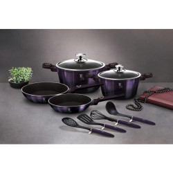 - Výnimočná súprava riadu zo série Purple Eclipse Collection zaujme nielen svojím nezameniteľným dizajnom, ale predovšetkým jedinečnými vlastnosťami- doménou tejto súpravy je 3-vrstvový titánový povrch s titánovými časticami, ktorý sa vyznačuje tvrdosťou a dokonalou nepriľnavosťou, žiadne jedlo sa nepripáli a vďaka tomu sa hrnce a panvice veľmi ľahko čistia- zároveň je vhodný na zdravé varenie s minimom tuku, v závislosti od použitých surovín aj bez jedinej kvapky tuku- vnútorné a vonkajšie vrstvy neobsahujú žiadne škodlivé látky, takže výsledné jedlo počas varenia nestráca vitamíny- zosilnená indukčná základňa Turbo z nehrdzavejúcej ocele pre maximálnu účinnosť varenia- energeticky úsporné varenie zabezpečuje odolné kované hliníkové teleso, ktoré sa rýchlo zahrieva po celej ploche a má dokonalú tepelnú vodivosť- ušetrí až 35 % energie a času v porovnaní s bežnými kastrólmi z nehrdzavejúcej ocele- výhodou sú aj pokrievky z tvrdeného žiaruvzdorného skla s úchytom z nehrdzavejúcej ocele a okrajom z nehrdzavejúcej ocele 18/10 po obvode- ich dokonalý tvar dobre prilieha k telu hrncov a panvíc a integrovaný otvor prirodzene reguluje množstvo pary vo vnútri hrnca- pokrievky rovnakej veľkosti sa dajú ľahko použiť aj na panvice rovnakej veľkosti- ergonomicky tvarované rukoväte majú protišmykovú zmäkčenú úpravu, vďaka ktorej sa pohodlne držia v ruke a umožňujú pevné a bezpečné uchopenie- vďaka izolačným prvkom zostávajú rukoväte počas celého procesu varenia chladné a nepripaľujú sa- zaoblený prechod medzi dnom a stenami uľahčuje miešanie obsahu- telo kastrólov a panvíc je zakončené zosilnenými okrajmi pre lepšiu odolnosť voči nárazom- celá súprava je vhodná pre všetky typy sporákov a indukciu- vhodné na pečenie v rúre a s pokrievkou do maximálnej teploty 160 °C- vďaka vynikajúcim nepriľnavým vlastnostiam je čistenie rýchle a jednoduché, stačí umyť teplou vodou a hubkou- vhodné aj do umývačky riadu, odporúča sa šetrný program na zachovanie dlhodobo perfektného stavu- hrnce sa dajú stohovať podľa veľkosti, čo je veľmi pohodlné na skladovanie- ideálne na každodenné varenie, dusenie a vyprážanie všetkých druhov potravín- Šetrné k životnému prostrediu, použité materiály neobsahujú žiadne škodlivé látky, ako je Pfoa, olovo alebo kadmium- veľmi atraktívny moderný dizajn v jedinečných metalických farbách- vďaka dokonalému dizajnu je riad vhodný aj na servírovanie jedla priamo na stôl- fialová kolekcia Eclipse- túto sériu možno doplniť mnohými jednotlivými kusmi riadu, doplnkami, súpravami nožov alebo spotrebičmi- kompletná súprava 10 kusov obsahuje:- kastról s pokrievkou 20 x 10 cm / 2,5 l- kastról s pokrievkou 24 x 12 cm / 4,1 litra- panvica 20 x 4 cm- panvica 24 x 4,5 cm- obracačka- šľahacia metla- naberačka na polievku- perforovaná lyžica