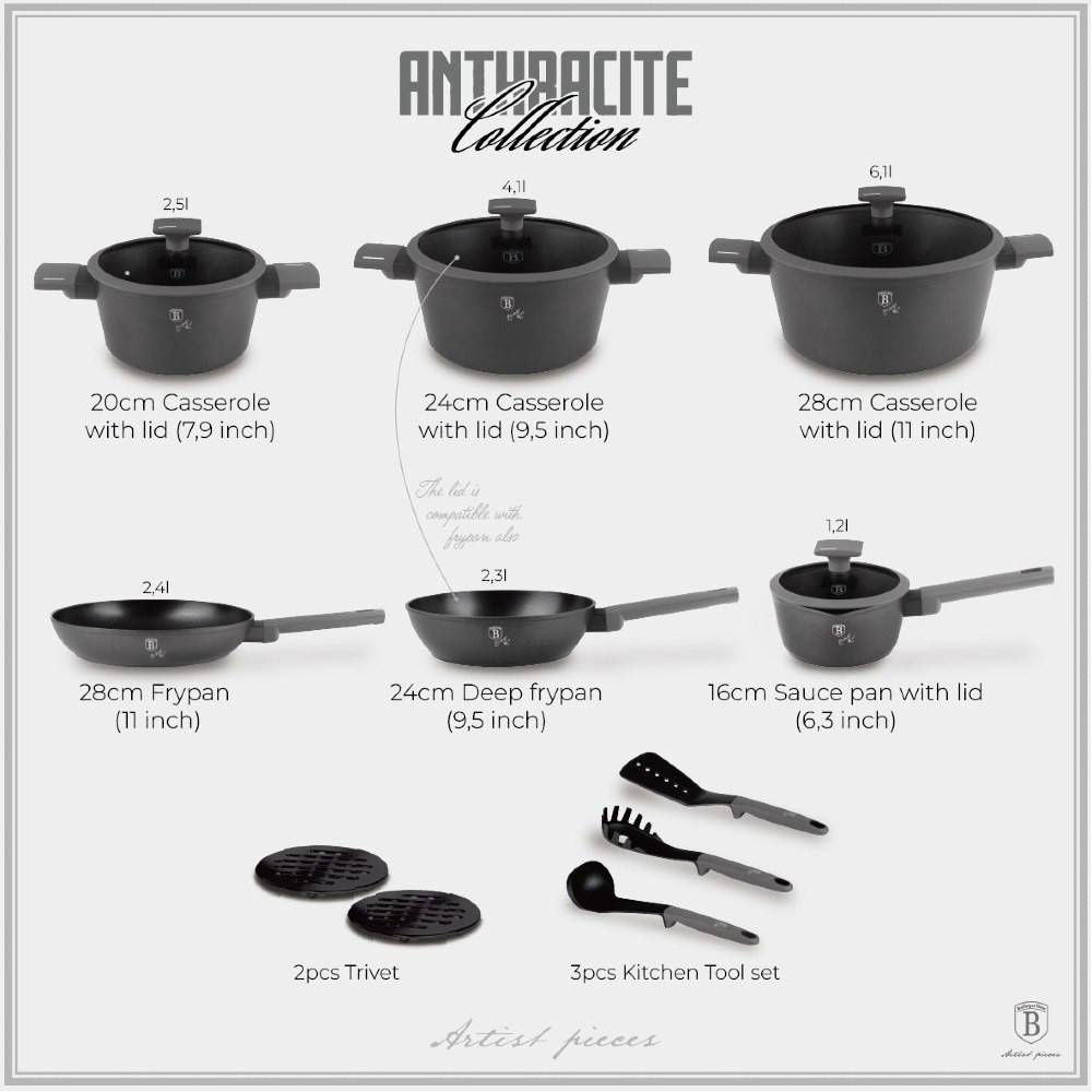 - Sada riadu s titánovým povrchom 15 ks Antracit Collection