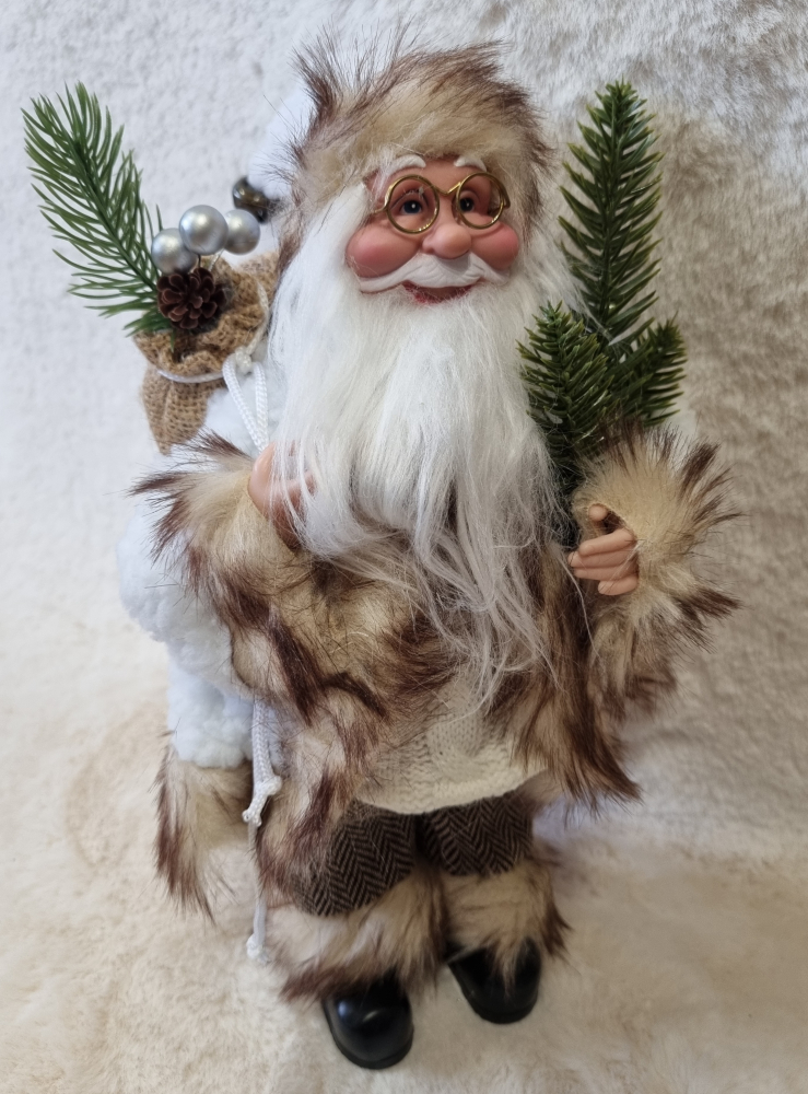 Mikuláš či Santa s priateľskou tvárou, hustou bielou bradou a jemným úsmevom okamžite prinesie kúzlo Vianoc do každého domova. Jeho milý výraz a realistické detaily vytvárajú pocit, akoby bol skutočne pripravený rozdávať darčeky a šíriť sviatočnú náladu.