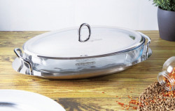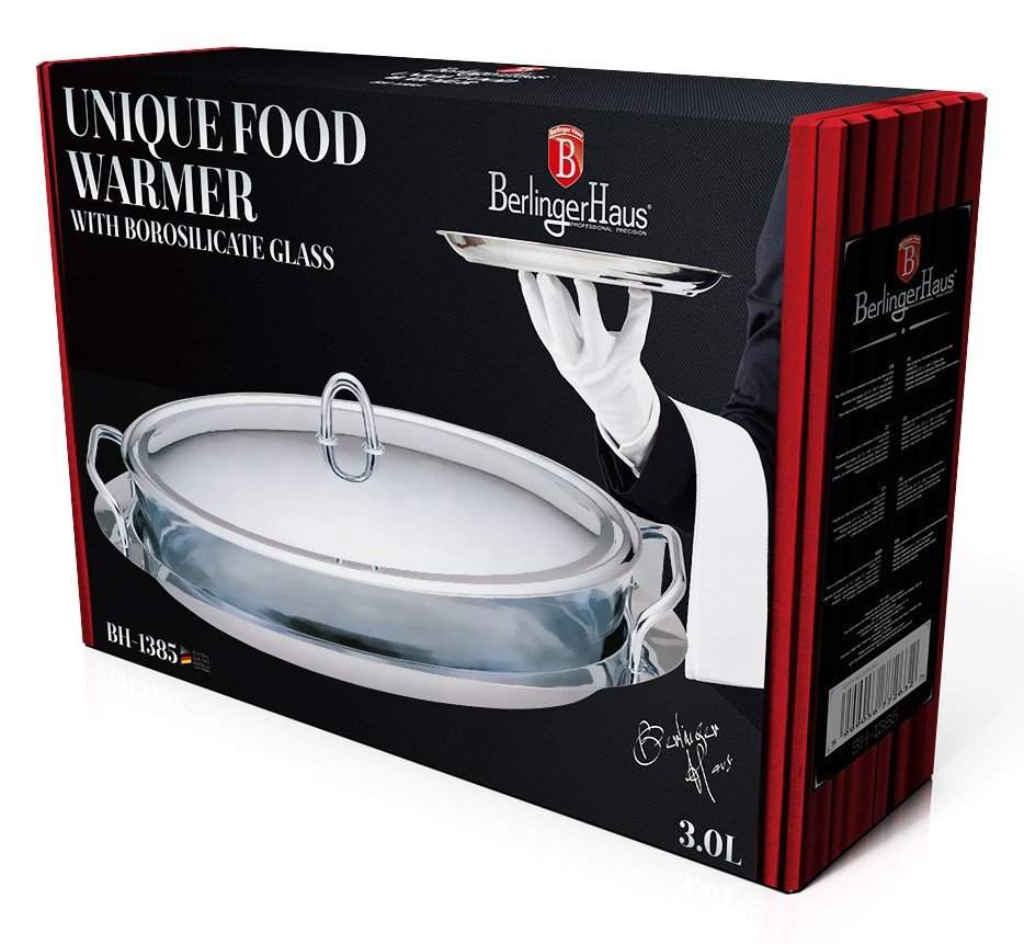 - materiál: nerezová oceľ / tvrdené žiaruvzdorné sklo - sklenenú nádobu je možné použiť v rúre na pečenie, mikrovlnke i mrazničke - teplotná odolnosť sklenenej nádoby: mínus 25 °C až 230 °C - v sklenenej nádobe je možné piecť, následne servírovať za pomoci nerezovej tácky - vďaka pokrievke vydrží jedlo dlhšie teplé - objem: 3 L - celkové rozmery: 42 x 26 x 10 cm - značka: Berlinger Haus
