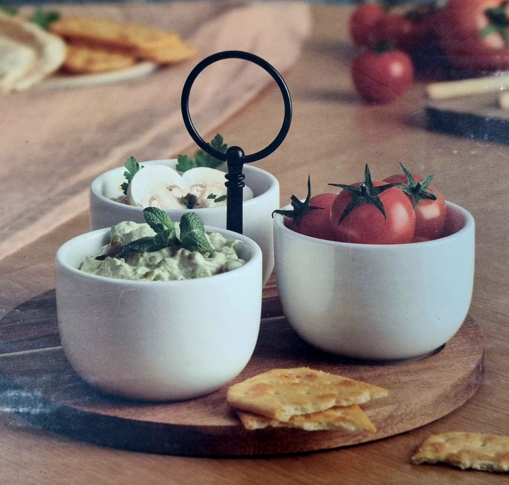 Servírovací set misiek s agatovým podnosom je ideálny na oslavy či malé pohostenie ktoré očarí nejednu návštevu. Môžete tam dať pomazánky , oriešky či sladké pokrmy. Vhodný je aj ako darček.