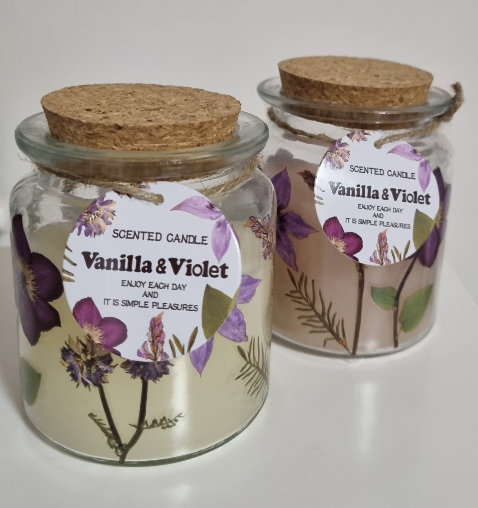 Sójová sviečka s jemnou vôňou v skle zdobená vlisovanými sušenými kvetmi na obale previazaná s jutovou šnúrkou čo jej dáva rustikálny vzhľad samozrejme bude zdobiť a prevoní váš interiér.