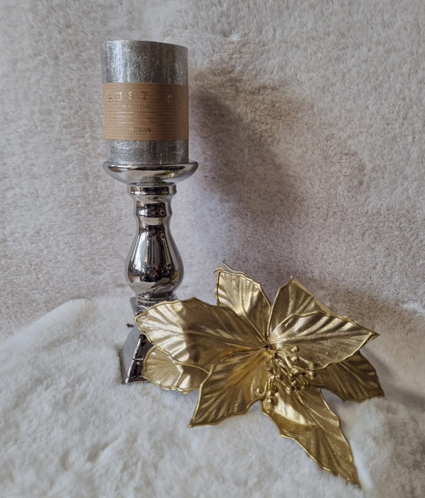 Tento strieborný svietnik je elegantným doplnkom do izieb v modernom alebo tradičnom štýle. Doplňte ho dekoratívnou sviečkou akejkoľvek farby a získate očarujúci doplnok do obývacej izby alebo spálne.