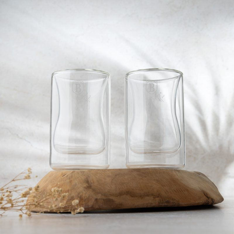 Poháre na espresso Berlinger Haus - sada 2 ks, 270 ml (BH-8881)Tieto elegantné dvojstenné poháre sú ideálne na podávanie espressa, cappuccina alebo iných teplých a studených nápojov. Vďaka svojej odolnosti voči teplotám od -10 °C do 200 °C udržia nápoj dlhšie pri požadovanej teplote bez toho, aby vám popálili ruky.Špecifikácie:- Objem: 270 ml- Balenie: sada 2 ks- Dvojitá stena - lepšia izolácia a pohodlné držanie- Teplotná odolnosť: -10 °C až 200 °C- Ochrana proti rozbitiu - jednotlivo balené v bublinkovom vreckuŠtýlová a praktická súprava, ktorá pozdvihne váš kávový rituál.
