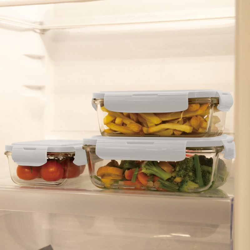 Sada sklenených dóz na potraviny - 3 ksElegantná a praktická súprava nádob na uchovávanie potravín z odolného borosilikátového skla.Technické parametre:Materiál: sklo, plast, silikónCapacity and dimensions:570 ml - 160,5 × 112,5 × 53 mm840 ml - 183 × 125,5 × 59 mm1180 ml - 203,5 × 144 × 64,5 mmFarba: krémováVlastnosti: - farba: biela, biela, biela, biela, biela, biela, biela, biela, biela:Praktické na skladovanie potravínVzduchotesné veko na zachovanie čerstvostiBorosilikátové sklo - odolné voči teplu do 200 °C (bez veka)Vhodné do mikrovlnnej rúry (bez veka)Vhodné do umývačky riaduJednoduché skladovanie a čistenieDoprajte si dokonalú kombináciu elegancie, praktickosti a spoľahlivosti - vaše potraviny zostanú vždy čerstvé a vaša kuchyňa krásne usporiadaná.