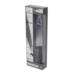 Súprava nožov 4 ks nerez Black Rose Collection. Táto 5dielna sada nožov je vyrobená z vysoko kvalitnej nerezovej ocele 3cr13, ktorá zaisťuje dlhú životnosť a odolnosť. Sada obsahuje kuchársky nôž (20 cm), nôž Santoku (17,5 cm), pracovný nôž (12,5 cm) a nôž na krájanie (9 cm). Nože sú navrhnuté v elegantnej čierno-ružovej zlatej farbe, ktorá dodáva vašej kuchyni moderný vzhľad. Kľúčové vlastnosti: Materiál: Nerezová oceľ 3cr13. Obsah sady: Kuchársky nôž (20 cm), nôž Santoku (17,5 cm), pracovný nôž (12,5 cm) a nôž na krájanie (9 cm). Farba: Čierno-ružové zlato. Rukoväť: Ergonomická mäkká rukoväť. Bezpečnosť: Chránič prstov. Ostrenie: Ručne ostrené. Dizajn: Elegantný dizajn. Prečo si ju zamilujete: Kvalita: Vysoko kvalitná nerezová oceľ pre dlhú životnosť. Štýlový dizajn: Elegantná čierno-ružová zlatá farba dodá vašej kuchyni moderný vzhľad. Praktické použitie: Ergonomická rukoväť a chránič prstov pre pohodlné a bezpečné používanie. Vylepšite svoje kuchynské zážitky s touto 5dielnou sadou nožov a užite si radosť z varenia každý deň