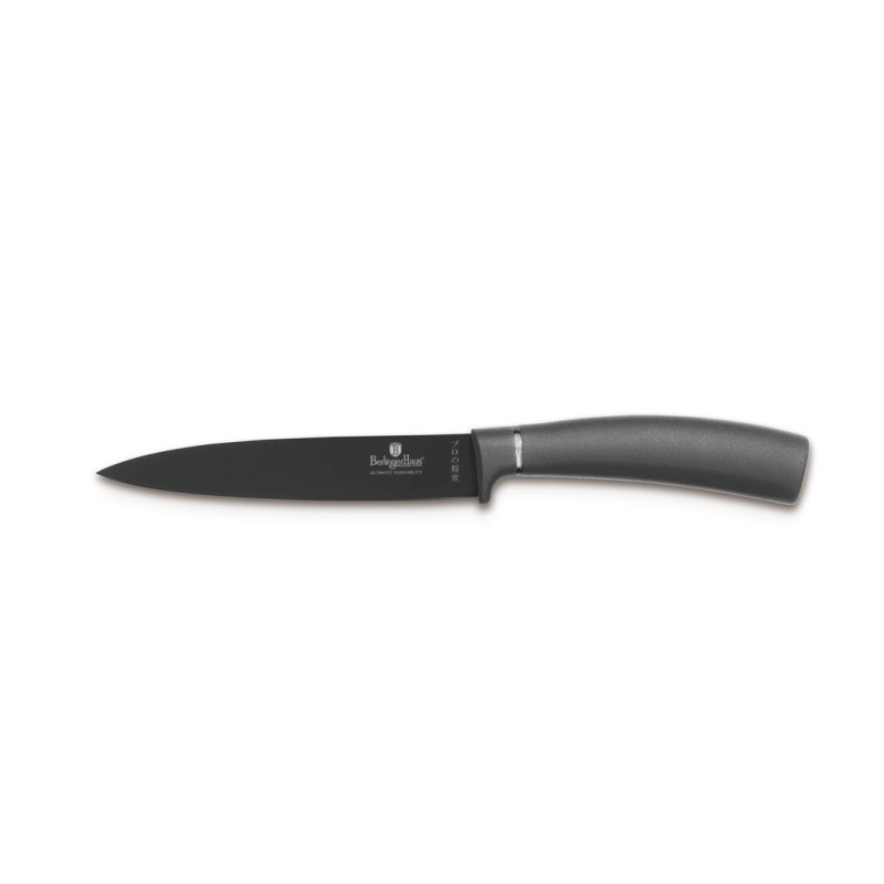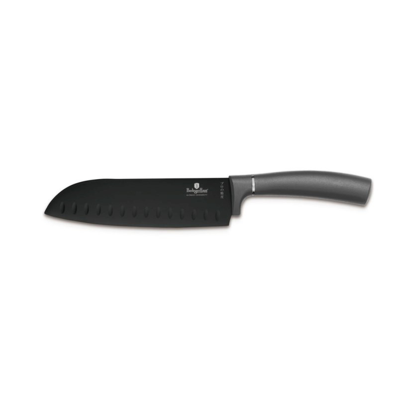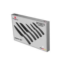 Sada kuchynských nožov Berlinger Haus - profesionálna presnosť v kuchyniPripravte sa na varenie ako skutočný šéfkuchár s touto exkluzívnou sadou nožov Berlinger Haus. Každý nôž je navrhnutý tak, aby v sebe spájal výkon, hygienu a elegantný dizajn - ideálny na každodenné použitie aj na špeciálne príležitosti.Špecifikácie sady nožov:- Materiál: nehrdzavejúca oceľ s čiernym nepriľnavým povrchom- Kuchársky nôž 20 cm- Nôž na chlieb 20 cm- Nôž Santoku 17,5 cm- Užitkový nôž 12,5 cm- Lúpací nôž 9 cm- Nôž Santoku 9 cm- Magnetická darčeková krabička- Farba: matná antracitováVýhody:- Tepelne spracovaná čepeľ pre dlhú životnosť- Antibakteriálny povrch- Nezanecháva škvrny ani pachy po jedle- Ergonomická rukoväť s mäkkým povrchom - nekĺže- Elegantný dizajn vhodný do každej kuchyne- Šetrný k životnému prostrediu, neobsahuje PFOA, olovo a kadmiumTáto súprava nožov v sebe spája funkčnosť, bezpečnosť a štýl, vďaka čomu je nepostrádateľným nástrojom v každej kuchyni.