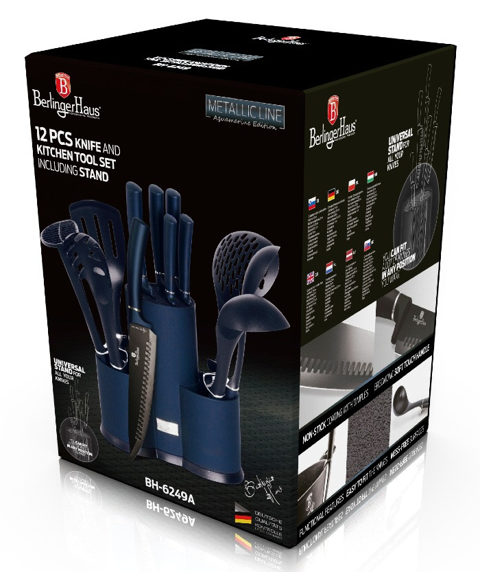- Súprava nožov a kuchynského náčinia v stojane 12 ks Aquamarine Metallic Line