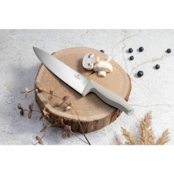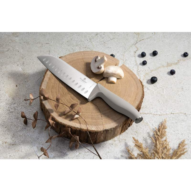 Súprava 6 ks nožov s magnetickým závesom z akáciového dreva, Sahara Collection • Materiál: nerezová oceľ 3cr13 • Kuchársky nôž 20 cm • Nôž na chlieb 20 cm • Nôž Santoku 17,5 cm • Pracovný nôž 12,5 cm • Nôž na krájanie 9 cm • Vešiak z agátového dreva 38x5x2 cm • Farba: antracitová • Vysoko kvalitná nerezová oceľ • Ergonomická mäkká rukoväť • Chránič prstov • Ostrené ručne • Elegantný dizajn