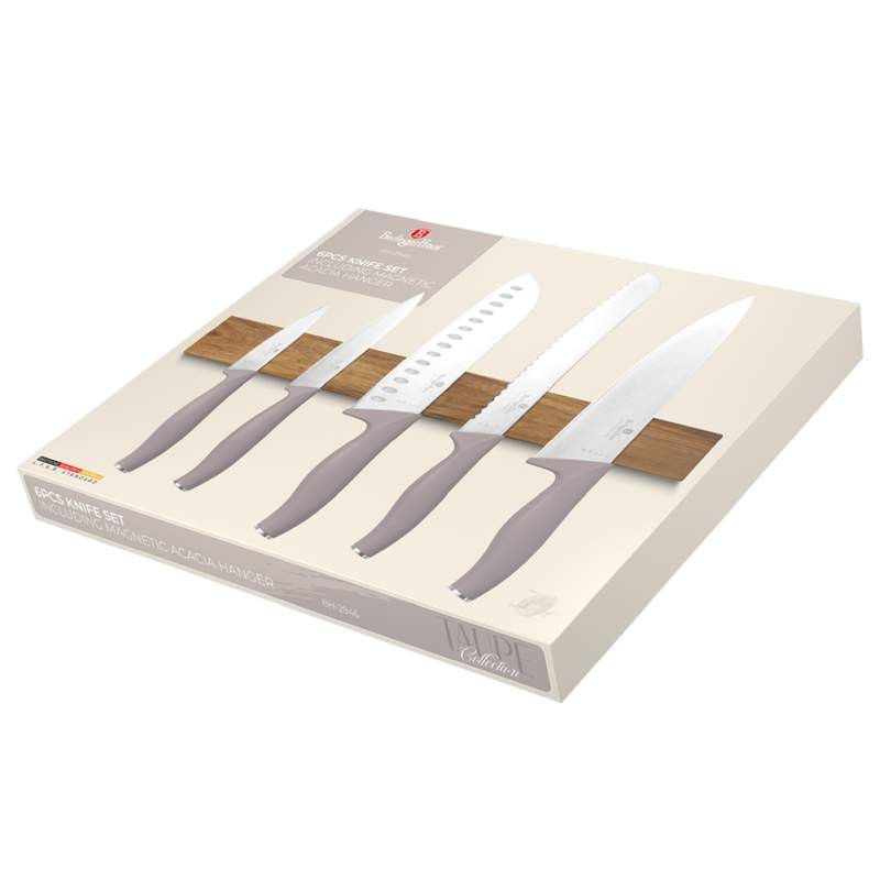 - Súprava nožov s magnetickým držiakom z agátového dreva 6 ks Taupe Collection