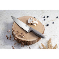 Súprava 6 ks nožov s magnetickým závesom z akáciového dreva, Taupe Collection • Materiál: nerezová oceľ 3cr13 • Kuchársky nôž 20 cm • Nôž na chlieb 20 cm • Nôž Santoku 17,5 cm • Pracovný nôž 12,5 cm • Nôž na krájanie 9 cm • Vešiak z agátového dreva 38x5x2 cm • Farba: antracitová • Vysoko kvalitná nerezová oceľ • Ergonomická mäkká rukoväť • Chránič prstov • Ostrené ručne • Elegantný dizajn