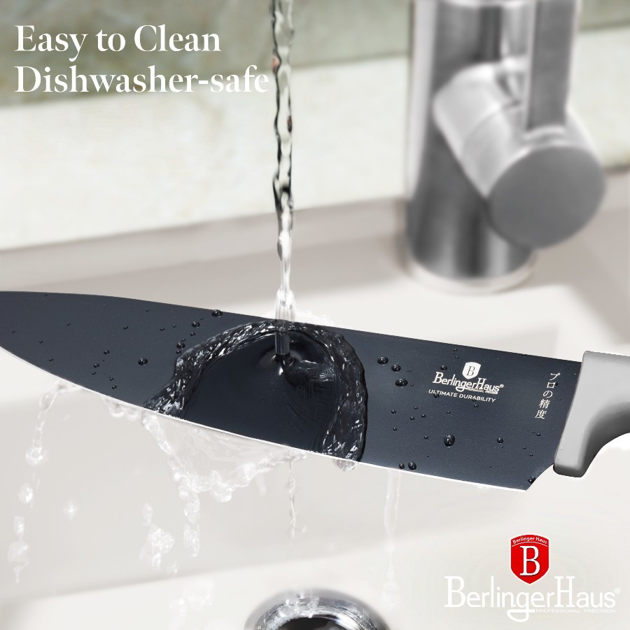 - Materiál: nerezová oceľ s tmavšou šedou nepriľnavou vrstvou - Kuchársky nôž 20 cm - Nôž na chlieb 20 cm - Nôž Santoku 17,5 cm - Úžitkový nôž 12,5 cm - Nôž na okrajovanie 9 cm - Nôž Santoku 9 cm - Magnetická darčeková krabička - Farba: matná šedá Aspen - ČEPEĽA VYROBENÉ NOVOU VÝROBNOU TECHNOLÓGIOU - Antibakteriálne - Nezanecháva škvrny - Nezadržuje pachy potravín - Ergonomická rukoväť s mäkkým povrchom - nešmýka sa! - Elegantný design - Šetrný k životnému prostrediu Bez PFOA, LEAD, kadmia