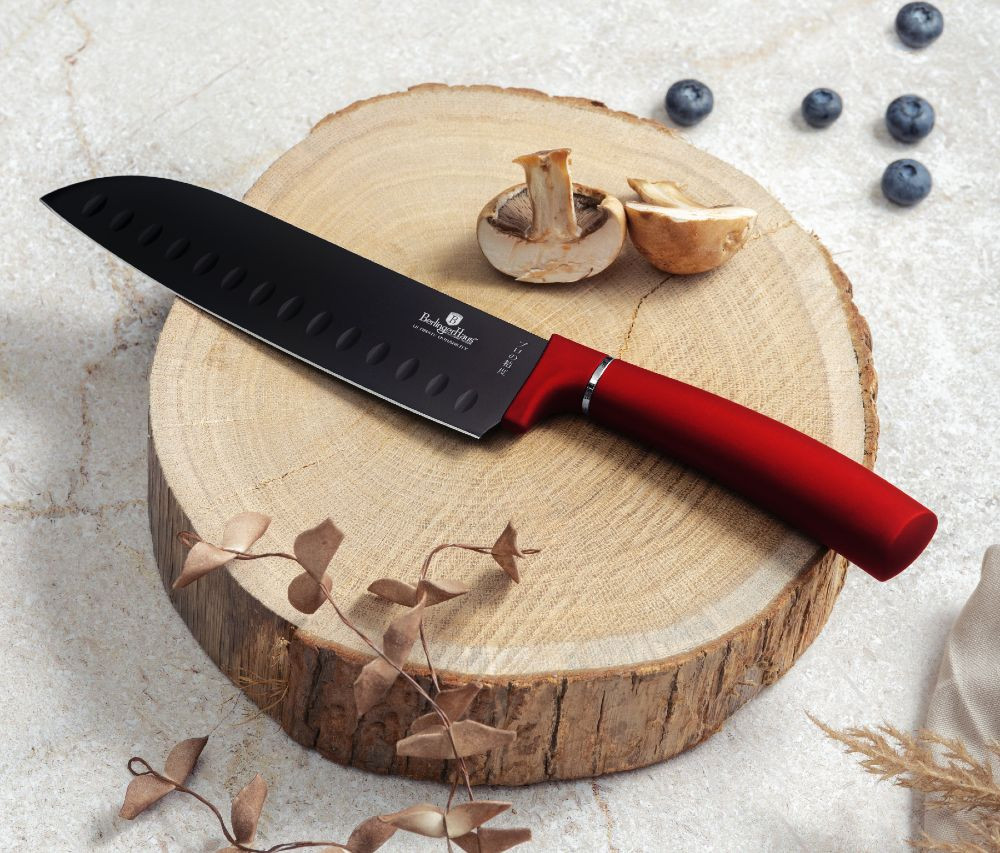 - materiál: nerezová oceľ s nepriľnavým povrchom - nepriľnavý antibakteriálny povrch Diamond - neprenáša pachy krájaných potravín a neničí vitamíny - ergonomicky tvarovaná mäkčená rukoväť s pevným úchopom - sada 6 ks obsahuje: - kuchársky nôž 20 cm - nôž na pečivo 20 cm - nôž Santoku 17,5 cm - univerzálny nôž 12,5 cm - nôž Santoku 9 cm - kuchynský nôž 9 cm