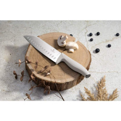 6dielna sada nožov so stojanom BAMBOO • Materiál: nerezová oceľ 3cr13 • Kuchársky nôž 20 cm • Nôž na chlieb 20 cm • Nôž Santoku 17,5 cm • Pracovný nôž 12,5 cm • Nôž na krájanie 9 cm • Bambusový stojan • Farba: béžová • Vysoko kvalitná nerezová oceľ • Čepeľ pre tepelné spracovanie • Ergonomická mäkká rukoväť • Chránič prstov • Ostrené ručne • Bambusový stojan • Elegantný dizajn