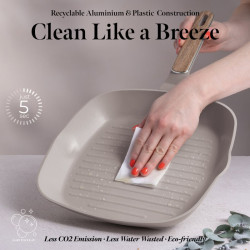 Súprava panvíc s titánovým povrchom Taupe Nordic Collection BERLINGERHAUS BH-8342 Elegantná a praktická sada panvíc v matnom šedohnedom odtieni s drevenými detailmi, ktorá prináša do vašej kuchyne príjemný severský štýl a maximálny komfort pri varení. Materiál: kovaný hliník s nepriľnavým povrchom TitanPro Farba: matná šedohnedá, drevená Obsah sady: • Panvica o 20 × 4,5 cm 1,0 l • Panvica o 24 × 4,8 cm 1,7 l • Grilovacia panvica o 28 × 4,1 cm 2,1 l Vlastnosti: • 3× odolný nepriľnavý povrch TitanPro pre ľahké varenie a čistenie • Ergonomická rukoväť s mäkkým povrchom, striebornou vložkou a svetlou farbou dreva, ktorá zostáva chladná aj pri varení • Minimalistický dizajn s matným povrchom vhodný do moderných kuchýň • Indukčné turbo pre rýchly a efektívny ohrev • Vhodné pre všetky typy varných dosiek • Ekologicky šetrné – bez PFOA, olova a kadmia • Ľahko sa čistí Registrovaný design BERLINGER HAUS!!!