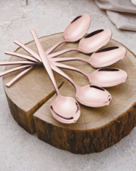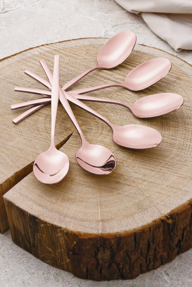 - Materiál: Nerezová oceľ s leštenou povrchovou úpravou - Sada obsahuje: - Nôž 6 ks 7,0 mm - Vidlička 6 ks 4,0 mm - Lyžica 6 ks 4,0 mm - Čajová lyžička 6 ks 2,7 mm - Farba: ružovo-zlatá rose gold - elegantný dizajn - Vysoko kvalitná nerezová oceľ s ružovo-zlatým PVD povlakom - Reprezentatívna darčeková krabička - Zrkadlový leštený povrch