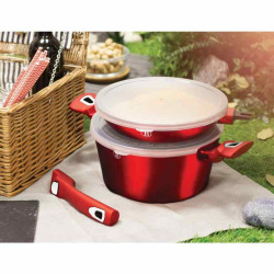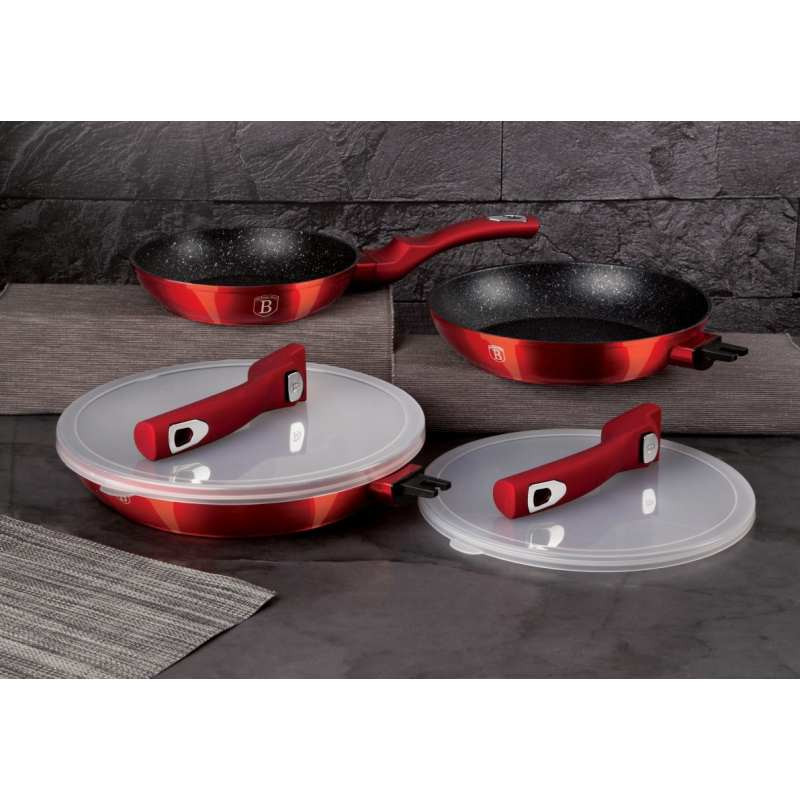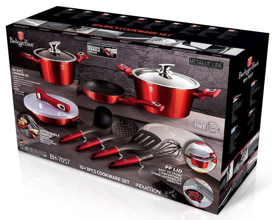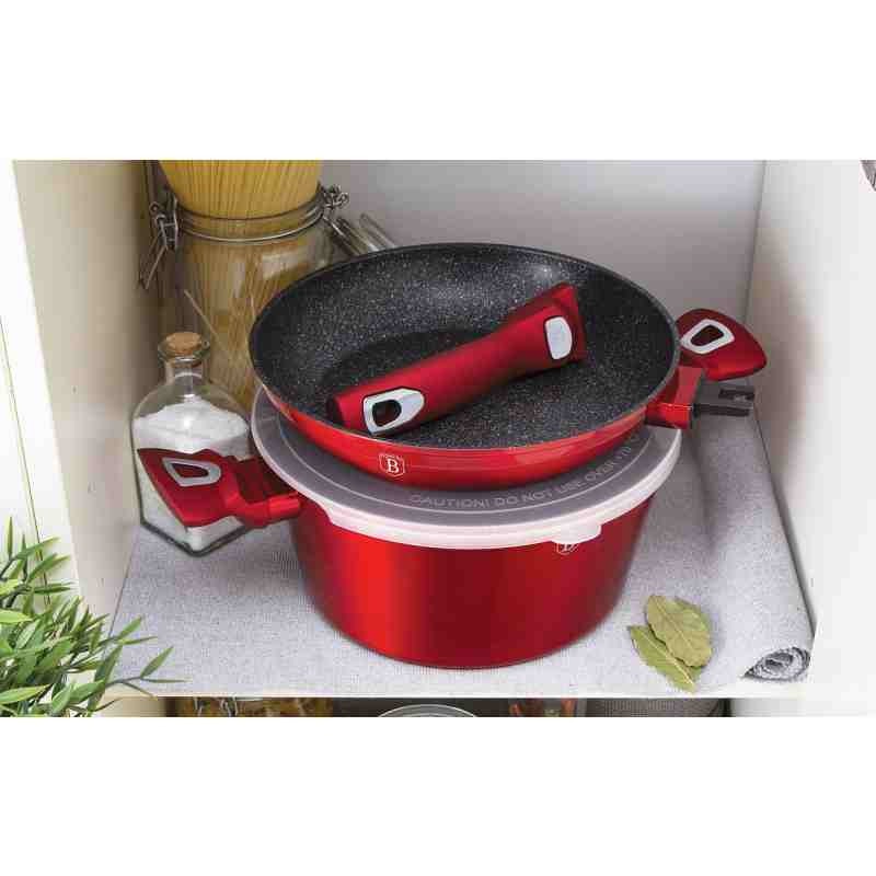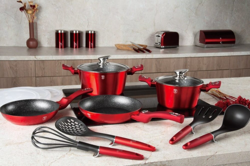 Bohato vybavená sada riadu z metalickej burgundy kolekcie zaujme nielen neprehliadnuteľným moderným dizajnom, ale predovšetkým svojimi jedinečnými vlastnosťami. V sade sú navyše 3 praktické viečka, ktorými je možné nádoby uzavrieť. Väčšia panvica má odnímateľnú rukoväť a je možné ju tak používať na zapekanie v rúre až do 220 ° C, navyše šetrí miesto pri skladovaní. - doménou tejto sady je 3-vrstvový povrch s mramorovým dizajnom charakteristický svojou dokonalou nepriľnavosťou, žiadne potraviny sa nepripaľujú a vďaka tomu sa kastróly aj panvice veľmi ľahko čistia - zároveň je vhodný na zdravé varenie s minimom tuku, v závislosti na použitých surovinách pokojne aj bez jedinej kvapky tuku - vnútorná aj vonkajšia vrstva neobsahujú žiadne škodliviny, výsledné pokrmy tak nestrácajú varením svoje vitamíny - zosilnené nerezové Turbo indukčné dno pre maximálnu efektivitu prípravy pokrmu - energeticky úsporné varenie zaisťuje korpus z odolného kovaného hliníka, ktorý sa rýchlo nahrieva po celom povrchu a má perfektnú tepelnú vodivosť - ušetríte až 35% energie a času oproti obyčajným nerezovým kastrólom - prednosťou sú tiež pokrievky z tvrdeného žiaruvzdorného skla s nerezovým úchopom, ktoré sú po obvode opatrené okrajom z nerezovej ocele 18/10 - ich dokonalý tvar dobre priľne k telu hrnca i panvíc a integrovaný otvor prirodzene reguluje množstvo pary vo vnútri nádoby - rovnakej veľkosti pokrievok možno bez problému použiť aj na rovnako veľké panvice - ergonomicky tvarované rukoväte majú protišmykovú mäkčenú úpravu, vďaka ktorej príjemne padnú do ruky a umožnia pevný a bezpečný úchop - vďaka izolačným prvkom zostávajú rukoväte po celú dobu varenia chladné a nepália - zaoblený prechod medzi dnom a stenami uľahčuje premiešavanie obsahu - telo kastrólov i panvíc je zakončené zosilnenými okrajmi pre lepšiu odolnosť voči nárazom - celá sada je vhodná na všetky druhy sporákov aj na indukciu - vhodné na zapekanie v rúre aj s pokrievkou do maximálnej teploty 160°C - vďaka nadštandardným nepriľnavým vlastnostiam je čistenie rýchle a nenáročné, stačí umyť teplou vodou a hubkou - vhodné tiež do umývačky riadu, na zachovanie dlhotrvajúceho bezchybného stavu sa odporúča šetrný program - hrnce je možné podľa veľkosti vkladať do seba, čo je veľmi výhodné pri skladovaní - súčasťou sady je aj funkčne jedinečné kuchynské náčinie z nylonu, ktoré nikdy nepoškriabe Váš riad, navyše má uprostred praktickú nožičku, vďaka ktorej je hlavica náčinia vo vzduchu, takže si pri jeho položení nezašpiníte kuchynskú linku - ideálny pre každodenné varenie, dusenie a smaženie akýchkoľvek pokrmov - ECOfriendly, použité materiály neobsahujú žiadne škodliviny ako Pfoa, olovo ani kadmium - vysoko atraktívny moderný dizajn v jedinečných metalických farbách - riad je vďaka svojmu perfektnému vzhľadu vhodný aj na priame servírovanie pokrmov na stôl - kolekcia: Burgundy Metallic Line - túto sériu je možné doplniť o množstvo jednotlivých kusov riadu, príslušenstva, sady nožov či spotrebičov - kompletná sada 13 ks obsahuje: - panvica 20 x 4,5 cm - panvica s odnímateľnou rukoväťou 24 x 5 cm - kastról s pokrievkou 20 x 10 cm / 2,5 litra - kastról s pokrievkou 24 x 12 cm / 4,1 litra - 4x kuchynské náčinie, naberačka na polievku, obracačka, šľahacia metla a dierovaná lyžica - 3x skladovacie viečko na hrnce aj panvice Hľadáte vhodnú sadu riadu do vašej kuchyne? Sadou získate všetky potrebné nádoby na varenie , či už budete variť pre seba alebo pre viac osôb. Veľkou výhodou je, že môžete objednať naraz viac riadu od overeného výrobcu BERLINGERHAUS. Sadu riadu zjednocuje jednotný dizajn , navyše červená farba celej sady je univerzálna a vynímať sa bude v každej kuchyni. Sada riadu s mramorovým povrchom 13 ks Burgundy Metallic Line I dodá vášmu vareniu nový rozmer Budete môcť variť rôzne jedlá súčasne a tým ušetríte čas a efektívne budete využívať aj kuchynskú plochu. Budete mať na jednom mieste riad vhodný na varenie rôznych druhov pokrmov – dusenie mäsa, varenie polievok, ryže, cestovín alebo na prípravu omáčok.