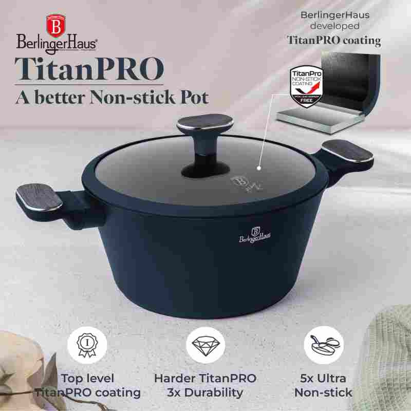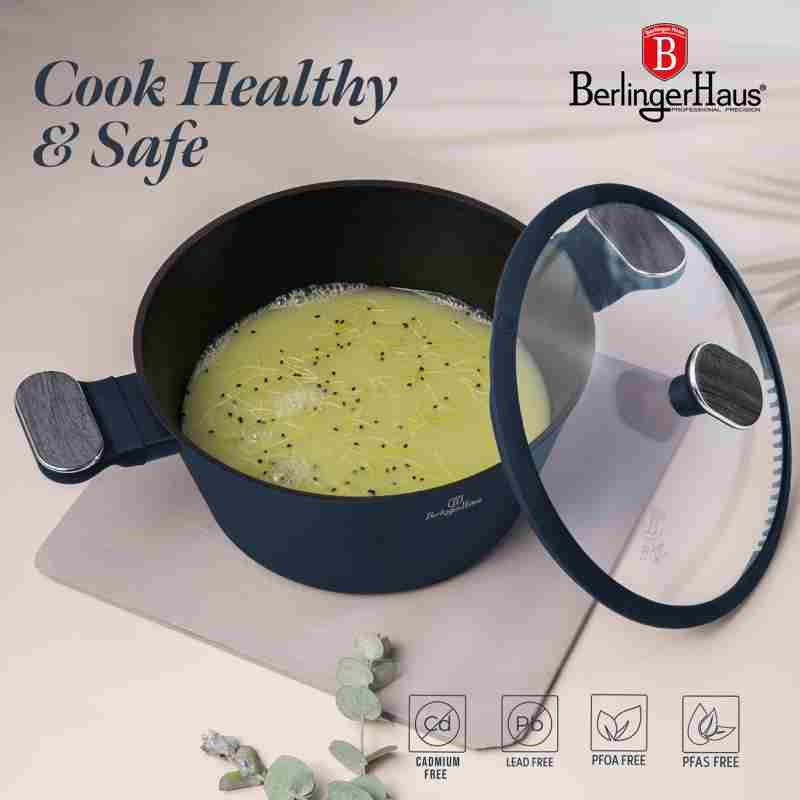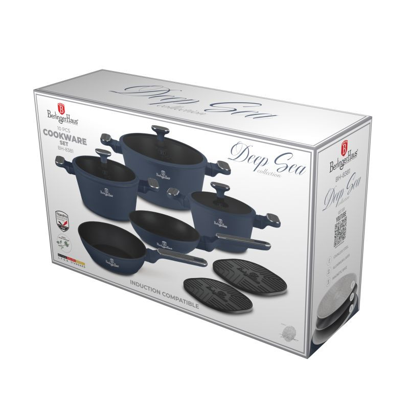 Súprava riadu 10 ks BERLINGERHAUS BH-8381 Deep Sea Collection – Keď sa funkcia ponorí do štýlu. Neprehliadnuteľná elegancia oceánskej hlbiny Vstúpte do sveta moderného varenia s prémiovou sadou riadu BERLINGERHAUS BH-8381 z kolekcie Deep Sea. Čo obsahuje sada? • Panvica priemer 20 × 4,5 cm / 1,0 l – na každodenné restovanie • Hlboká panvica priemer 24 × 6,5 cm / 2,3 l – ideálna na omáčky a dusené jedlá • Kastról s vekom a sitkom priemer 20 × 11 cm / 2,6 l • Kastról s vekom a sitkom priemer 24 × 12,5 cm / 4,3 l • Kastról s vekom a sitkom priemer 28 × 13 cm / 6,3 l • 2× silikónová podložka – odolná a praktická ochrana pracovnej dosky Nepriľnavosť, ktorá vás nesklame TitanPro povrch je 3× odolnejší ako bežné nepriľnavé vrstvy. Varenie bez pripaľovania, zdravšie as minimálnym úsilím pri čistení – to je kuchynská sloboda, ktorú si zamilujete. Ergonómia a pohodlie v každom detaile Rukoväte a gombíky s mäkkým dotykom a šedým dreveným efektom skvele padnú do ruky a zostávajú chladné aj pri dlhom varení. Premyslené veká s cedníkom Tvrdené sklo, parná ventilácia, silikónové tesnenie a praktická funkcia cedenia – ideálna pre moderné varenie bez kompromisov. Indukčný turbo systém Spodná časť riadu je optimalizovaná na rýchly a rovnomerný ohrev. Bez ohľadu na typ varnej dosky – táto sada je vždy pripravená. Bez škodlivín. Plná štýlu. Bez PFOA, olova a kadmia. Ekologicky šetrná voľba, ktorá myslí na vás aj prírodu. Prečo si vybrať sadu BERLINGERHAUS BH-8381? • TitanPro povrch – extrémna odolnosť, ľahké varenie • Cedníkové veká – inteligentné a praktické riešenie pre každodenné varenie • Design Deep Sea – matná modrá a šedé drevo dodajú vašej kuchyni štýl • Kompletná zostava – pripravená na každý recept • Jednoduchá údržba – ušetrí čas aj energiu Deep Sea Collection – Funkcia v hĺbke. Varte múdro, žite štýlovo – s kolekciou, ktorá premení každé varenie na radosť.