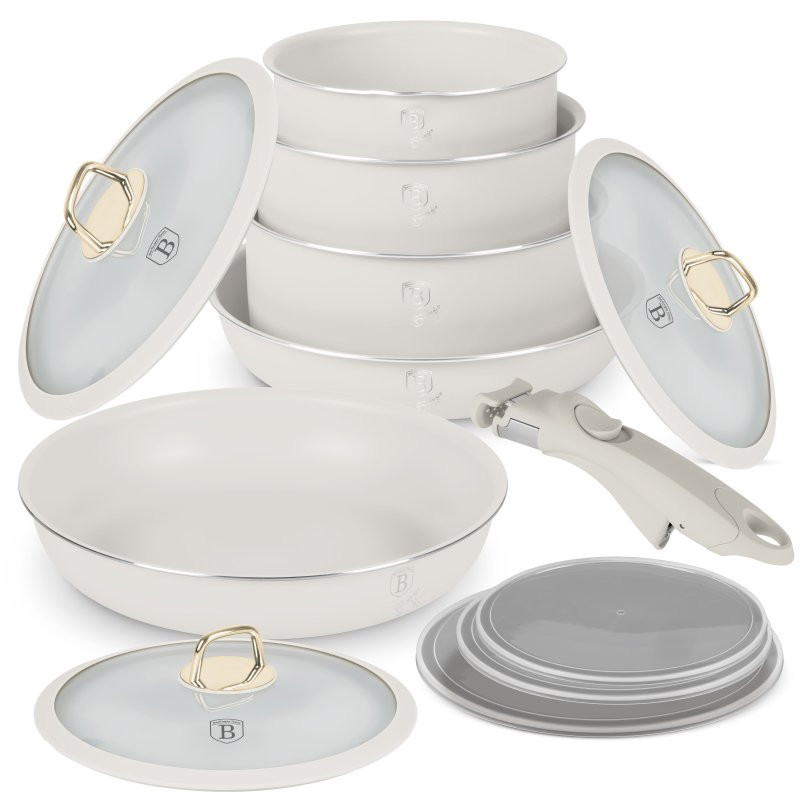 - Materiál: hrubostenný hliník - pre rovnomerné rozloženie tepla a dlhú životnosť- Nepriľnavý čierny titánový povrch - odolný, hygienický a ľahko sa čistí- Obsah súpravy:- Priemer panvice 24 × 4,8 cm / 1,7 l- Panvica s vekom a cedníkom 28 × 5,2 cm / 1,7 l- Hrniec s priemerom hrdla 16 × 7,5 cm / 1,2 l- Pekáč s pokrievkou a cedníkom priemer 18 × 7,9 cm / 1,7 l- Pekáč s pokrievkou a cedníkom s priemerom 20 × 8,4 cm / 2,2 l- 3 ks inteligentných poklopov- Odnímateľná rukoväť Click it- Farba: krémová - elegantný a nadčasový matný dizajn- Stohovateľný dizajn - ideálny na úsporu miesta- Click it rukoväť - ergonomická, s mäkkým povrchom na dotyk, ľahko odnímateľná- Vhodné do rúry - bez veka a rukoväte- Veko s integrovaným sitkom - praktické a efektívne- Indukčný turbo systém - rýchly ohrev, úspora energie- Vhodný pre všetky typy varných dosiek - vrátane indukcie- Šetrný k životnému prostrediu - neobsahuje PFOA, olovo a kadmium- Jednoduché čistenie - vyrobené z hygienických a účinných materiálov