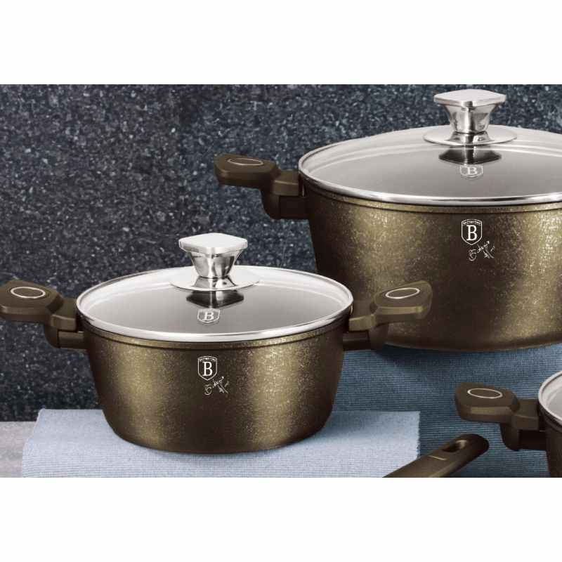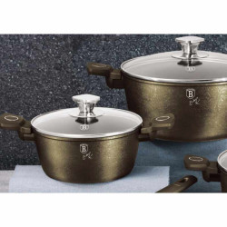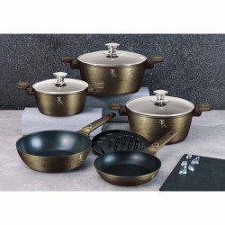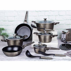 - Výnimočná sada riadu z novej kolekcie Crystal zaujme nielen neprehliadnuteľným moderným dizajnom, ale predovšetkým svojimi jedinečnými vlastnosťami - doménou tejto sady je 3vrstvový titánový povrch s časticami titánu, charakteristický svojou tvrdosťou a dokonalou nepriľnavosťou, žiadne potraviny sa nepripaľujú a vďaka tomu sa kastróly aj panvice veľmi ľahko čistia - zároveň je vhodný na zdravé varenie s minimom tuku, v závislosti na použitých surovinách pokojne aj bez jedinej kvapky tuku - vnútorná aj vonkajšia vrstva neobsahujú žiadne škodliviny, výsledné pokrmy tak nestrácajú varením svoje vitamíny - zosilnené nerezové Turbo indukčné dno pre maximálnu efektivitu prípravy pokrmu - energeticky úsporné varenie zaisťuje korpus z odolného kovaného hliníka, ktorý sa rýchlo nahrieva po celom povrchu a má perfektnú tepelnú vodivosť - ušetríte až 35% energie a času oproti obyčajným nerezovým kastrólom - prednosťou sú tiež pokrievky z tvrdeného žiaruvzdorného skla s nerezovým úchopom, ktoré sú po obvode opatrené okrajom z nerezovej ocele 18/10 - ich dokonalý tvar dobre priľne k telu hrnca i panvíc a integrovaný otvor prirodzene reguluje množstvo pary vo vnútri nádoby - rovnakej veľkosti pokrievok možno bez problému použiť aj na rovnako veľké panvice - ergonomicky tvarované rukoväte majú protišmykovú mäkčenú úpravu, vďaka ktorej príjemne padnú do ruky a umožnia pevný a bezpečný úchop - vďaka izolačným prvkom zostávajú rukoväte po celú dobu varenia chladné a nepália - zaoblený prechod medzi dnom a stenami uľahčuje premiešavanie obsahu - telo kastrólov i panvíc je zakončené zosilnenými okrajmi pre lepšiu odolnosť voči nárazom - celá sada je vhodná na všetky druhy sporákov aj na indukciu - vhodné na zapekanie v rúre aj s pokrievkou do maximálnej teploty 160°C - vďaka nadštandardným nepriľnavým vlastnostiam je čistenie rýchle a nenáročné, stačí umyť teplou vodou a hubkou - vhodné tiež do umývačky riadu, na zachovanie dlhotrvajúceho bezchybného stavu sa odporúča šetrný program - hrnce je možné podľa veľkosti vkladať do seba, čo je veľmi výhodné pri skladovaní - ideálny pre každodenné varenie, dusenie a smaženie akýchkoľvek pokrmov - ECOfriendly, použité materiály neobsahujú žiadne škodliviny ako Pfoa, olovo ani kadmium - vysoko atraktívny moderný dizajn v jedinečných metalických farbách - riad je vďaka svojmu perfektnému dizajnu vhodný aj pre priame servírovanie pokrmov na stôl - kolekcia: Crystal collection - túto sériu je možné doplniť o množstvo jednotlivých kusov riadu, príslušenstva, sady nožov či spotrebičov - kompletná sada 15 ks obsahuje: - panvica 28 x 5 cm - hlboká panvica 24 x 6,8 cm - kastról s pokrievkou 20 x 10 cm / 2,5 litra - kastról s pokrievkou 24 x 12 cm / 4,1 litra - kastról s pokrievkou 28 x 12,5 cm / 6,1 litra - rajnica s pokrievkou 16 x 8,5 cm / 1,2 litra - 3x kuchynské náčinie: naberačka na polievku, naberačka na cestoviny, obracačka - 2x podložka pod horúci riad Hľadáte vhodnú sadu riadu do vašej kuchyne? Sadou získate všetky potrebné nádoby na varenie , či už budete variť pre seba alebo pre viac osôb. Veľkou výhodou je, že môžete objednať naraz viac riadu od overeného výrobcu BERLINGERHAUS. Sadu riadu zjednocuje jednotný dizajn , navyše šedá farba celej sady je univerzálna a vynímať sa bude v každej kuchyni. Súprava riadu s titánovým povrchom 15 ks Crystal Collection dodá vášmu vareniu nový rozmer Budete môcť variť rôzne jedlá súčasne a tým ušetríte čas a efektívne budete využívať aj kuchynskú plochu. Budete mať na jednom mieste riad vhodný na varenie rôznych druhov pokrmov – dusenie mäsa, varenie polievok, ryže, cestovín alebo na prípravu omáčok.