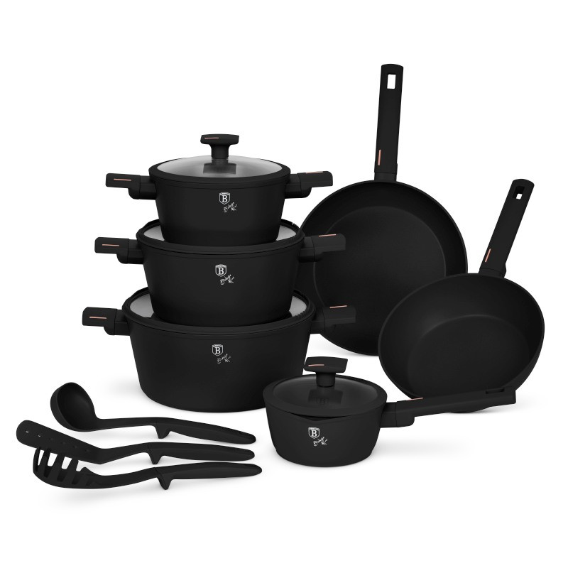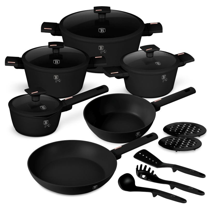 Prémiová sada riadu v elegantnej čiernej, ružovej a zlatej farbe na každodenné varenie a náročné kulinárske výzvy. Kolekcia Monaco spája vysokú funkčnosť s dizajnérskym spracovaním.Technické špecifikácie:- Materiál: kovaný hliník so silnými stenami - pre rovnomerné rozloženie tepla- nepriľnavý titánový povrch - odolný, hygienický a ľahko sa čistíObsah súpravy: - nádoba na pečenie s hrncom, ktorá sa dá použiť na pečenie:- Hlboká panvica s priemerom 24 × 6,5 cm / 2,3 l- Panvica s priemerom 28 × 5,2 cm / 2,4 l- Zapekacia misa s vekom a cedníkom s priemerom 20 × 10,4 cm / 2,5 l- Zapekacia misa s vekom a cedníkom s priemerom 24 × 11,8 cm / 4,1 l- Pekáč s pokrievkou a cedníkom priemer 28 × 12,4 cm / 6,1 l- Hrniec s pokrievkou priemer 16 × 7,5 cm / 1,2 l- 3 ks kuchynského náradia: obracačka, naberačka na špagety, naberačka na polievku- 2 čierne bakelitové podložkyĎalšie vlastnosti: - Farba: - Ergonomická rukoväť soft-touch - bezpečné a pohodlné uchopenie - Pokrievka s integrovaným sitkom - praktické riešenie na prelievanie tekutín- Indukčný ohrev - rýchly a úsporný- Vhodné pre všetky typy varných dosiek, vrátane indukcie - Elegantný dizajn - luxusný vzhľad pre moderné kuchyne - Šetrný k životnému prostrediu - neobsahuje PFOA, olovo a kadmium- Jednoduchá údržba - vyrobený z hygienických a odolných materiálovKolekcia Monaco - dokonalá kombinácia štýlu, výkonu a praktickosti na varenie bez kompromisov.