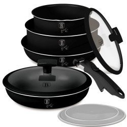 Doprajte si varenie s ľahkosťou a maximálnym komfortom vďaka tejto praktickej sade riadu z kolekcie Matte Black Collection. Skvelá voľba pre efektívnu prípravu jedál so štýlovým dizajnom a jednoduchou údržbou. Technické parametre: • Materiál: hliník s hrubými stenami – pre pevnosť a rovnomerné rozloženie tepla • Obsah sady: – 2 ks šikovných pokrievok s funkciou Click it – praktické a úsporné skladovanie – Panvica priemer 20 × 4,5 cm / 1,0 l – Panvica priemer 24 × 4,8 cm / 1,7 l – Hrniec s hrdlom priemer 16 × 7,5 cm / 1,2 l – Zapekací hrniec priemer 20 × 8,4 cm / 2,2 l – Sklenená pokrievka (cedník) priemer 20 a priemer 24 cm • Farba: matná čierna – moderný a elegantný vzhľad • Nepriľnavý čierny titánový povlak – odolný a ľahko sa čistí • Ergonomická rukoväť Soft-touch – pohodlné a bezpečné držanie • Vhodné do rúry aj bez pokrievky a rukoväte Click it – univerzálne použitie • Turbo indukčný ohrev – rýchly ohrev a úspora energie • Vhodné pre všetky typy varných dosiek vrátane indukčných • Minimalistický štýl s matným povrchom – estetika a funkčnosť v jednom • Ekologicky šetrné – bez PFOA, olova a kadmia • Ľahko sa čistí – pre každodenné pohodlie S touto sadou Matte black Collection si užijete pohodlné a efektívne varenie s dotykom elegancie. Doprajte si varenie s ľahkosťou a maximálnym komfortom vďaka tejto praktickej sade riadu z kolekcie Monaco Collection. Skvelá voľba pre efektívnu prípravu jedál so štýlovým dizajnom a jednoduchou údržbou. Technické parametre: • Materiál: hliník s hrubými stenami – pre pevnosť a rovnomerné rozloženie tepla • Obsah sady: – 2 ks šikovných pokrievok s funkciou Click it – praktické a úsporné skladovanie – Panvica O20 × 4,5 cm / 1,0 l – Panvica O24 × 4,8 cm / 1,7 l – Hrniec s hrdlom O16 × 7,5 cm / 1,2 l – Zapekací hrniec O20 × 8,4 cm / 2,2 l – Sklenená pokrievka (cedník) O20 a O24 cm • Farba: čierna – moderný a elegantný vzhľad • Nepriľnavý čierny titánový povlak – odolný a ľahko sa čistí • Ergonomická rukoväť Soft-touch – pohodlné a bezpečné držanie • Vhodné do rúry aj bez pokrievky a rukoväte Click it – univerzálne použitie • Turbo indukčný ohrev – rýchly ohrev a úspora energie • Vhodné pre všetky typy varných dosiek vrátane indukčných • Minimalistický štýl s matným povrchom – estetika a funkčnosť v jednom • Ekologicky šetrné – bez PFOA, olova a kadmia • Ľahko sa čistí – pre každodenné pohodlie S touto sadou Monaco Collection si užijete pohodlné a efektívne varenie s dotykom elegancie.