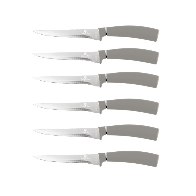 - Materiál: nerezová oceľ - 6 ks steakových nožov 11,5 cm - farba: šedá Aspen - Ergonomicky navrhnutá odolná, nová rukoväť z mäkčeného plastu - Titánové čepele - Laserom ostrené čepele - Štýlové