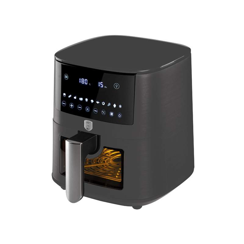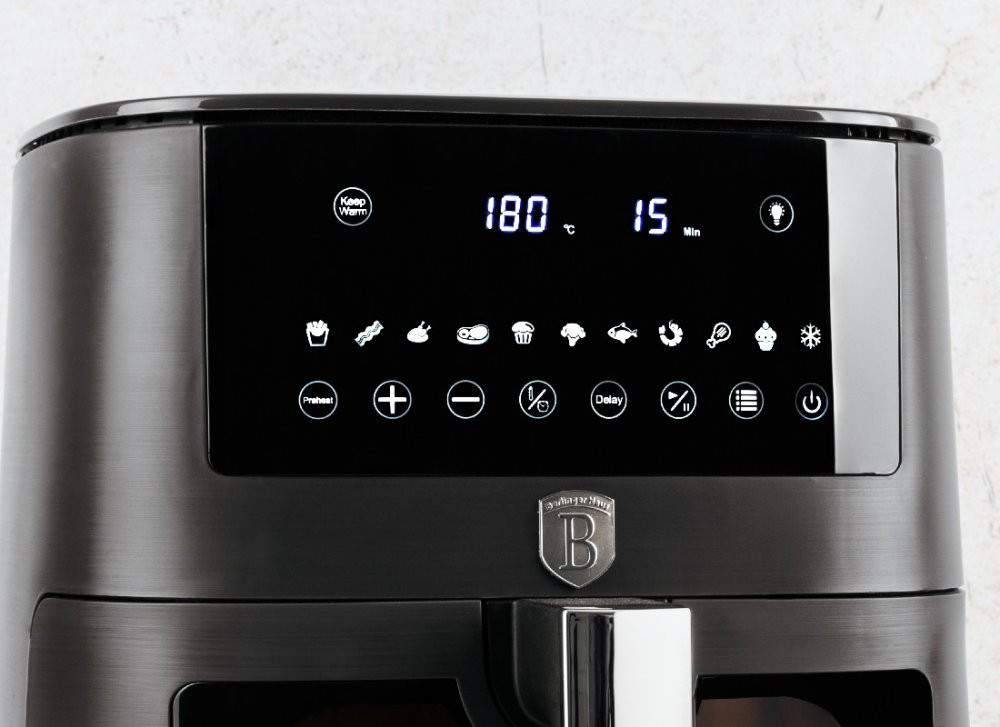 - Napájanie: 220-240V ~ 50/60Hz 1650W - Regulácia teploty: 40-200 ° C - XXXL VEĽKOSŤ: Kôš na potraviny s nepriľnavým povrchom 8L - DIGITÁLNE ovládanie - Farba: antracitová- Funkcia udržiavania teploty a oneskorenia - Funkcia automatického vypnutia pri vybratí koša - Časti vhodné na umývanie v umývačke riadu s trojvrstvovým odolným nepriľnavým povrchom titanPro - 8 funkcií automatického varenia s východiskovým nastavením - Ochrana proti prehriatiu - Dotykový LED displej - Priezorové okienko - Časovač až na 60 min. - Protišmykové nožičky - Zdravý spôsob varenia bez oleja a tuku Táto najmodernejšia fritéza kombinuje moderný dizajn, pokročilé technológie a výnimočnú funkčnosť, vďaka čomu je dokonalým spoločníkom do kuchyne. Pozrime sa na funkcie, vďaka ktorým táto fritéza vyniká nad ostatnými. - Moderný dizajn a vysoká kvalita spracovania : Elegantná matná antracitová povrchová úprava dodá interiéru vašej kuchyne moderný nádych. Tento štýlový spotrebič je navrhnutý tak, aby doplnil estetiku každej kuchyne a je dokonalým doplnkom vášho domova. - VEĽKOSŤ XXL: 8 litrový košík na potraviny s nepriľnavým povrchom. Fritéza Antracit Collection má extra veľkú kapacitu 8 litrov, ideálna na varenie veľkých jedál a na rodinné stretnutia. Kôš na potraviny má nepriľnavú vrstvu, ktorá zaisťuje ľahké čistenie a zdravšie varenie bez potreby nadmerného množstva oleja. - Regulácia teploty: 40-200°C: Dosiahnite zakaždým dokonalé výsledky varenia s presnou reguláciou teploty. Či už vyprážate, opekáte, pečiete alebo ohrievate, môžete ľahko upraviť požadovanú teplotu pre dosiahnutie optimálnych výsledkov až do 200 °C. - Digitálne rozhranie : Užívateľsky prívetivé digitálne rozhranie zaisťuje jednoduché ovládanie. Jednoduchými niekoľkými kliknutiami si môžete vybrať svoje preferencie varenia a bez námahy sledovať proces. - Zdravé varenie bez oleja a tuku: Vychutnajte si svoje obľúbené vyprážané jedlá bez výčitiek svedomia. Fritézy BerlingerHaus vám umožňujú variť s malým alebo žiadnym množstvom oleja, znižujú obsah tuku a podporujú zdravší životný štýl. - Funkcia udržiavania teploty a oneskorenia.: Udržujte svoje jedlo teplé, kým ho nebudete pripravení podávať, alebo nastavte funkciu odloženia, aby ste začali variť neskôr. Tieto funkcie dodávajú vášmu každodennému vareniu novú úroveň pohodlia. - Automatické vypnutie pri vybratí koša: Pre väčšiu bezpečnosť sa teplovzdušná fritéza automaticky vypne po vybratí koša. Predídete tak nehodám a získate pokoj. - Diely vhodné do umývačky riadu s 3x odolným nepriľnavým povrchom TitanPro: S dielmi vhodnými do umývačky riadu je upratovanie po varení hračkou. Odolný nepriľnavý povrch TitanPro zaisťuje odolnosť a jednoduchú údržbu. - 8 automatických funkcií varenia: Zjednodušte si varenie s 8 predprogramovanými funkciami automatického varenia. Či už pripravujete hranolky, kura alebo dezert, s týmito predvoľbami bude varenie hračkou. - Priehľadné okienko: Sledujte priebeh varenia bez toho, aby ste museli otvárať kôš. Viditeľné okienko vám umožní kedykoľvek skontrolovať jedlo a dosiahnuť perfektné výsledky. - Časovač až 60 minút.: Nastavte časovač až na 60 minút na presné varenie. Fritéza vás upozorní, keď je vaše jedlo hotové, takže sa môžete sústrediť na iné úlohy. - Protišmykové nožičky: Protišmykové nožičky poskytujú stabilitu a zabraňujú pohybu fritézy počas prevádzky, čo zaisťuje bezpečný zážitok z varenia.