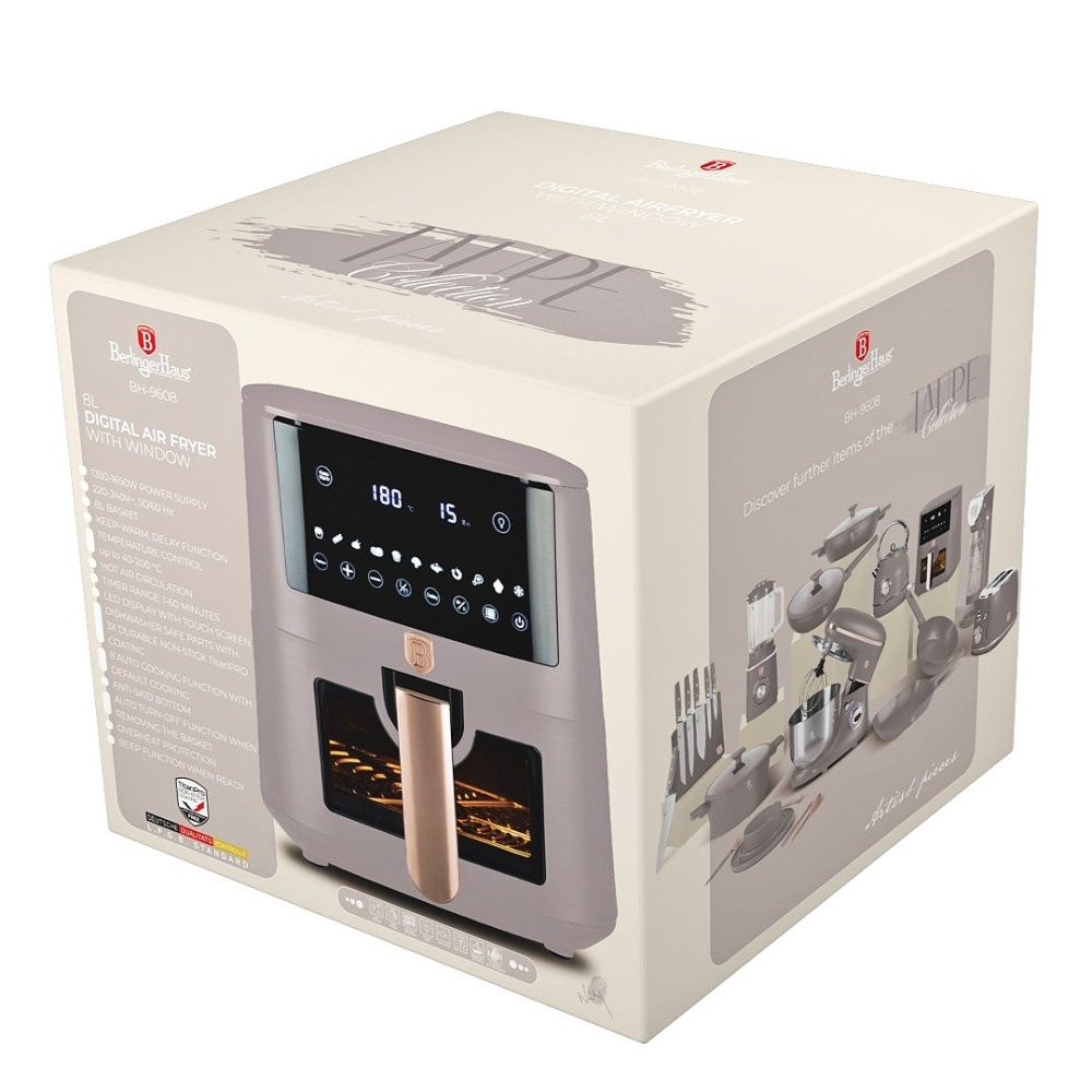 - Napájanie: 220-240V ~ 50/60Hz 1650W - Regulácia teploty: 40-200 ° C - XXXL VEĽKOSŤ: Kôš na potraviny s nepriľnavým povrchom 8L - DIGITÁLNE ovládanie - Farba: šedohnedá taupe - Funkcia udržiavania teploty a oneskorenia - Funkcia automatického vypnutia pri vybratí koša - Časti vhodné na umývanie v umývačke riadu s trojvrstvovým odolným nepriľnavým povrchom titanPro - 8 funkcií automatického varenia s východiskovým nastavením - Ochrana proti prehriatiu - Dotykový LED displej - Priezorové okienko - Časovač až na 60 min. - Protišmykové nožičky - Zdravý spôsob varenia bez oleja a tuku Táto najmodernejšia fritéza kombinuje moderný dizajn, pokročilé technológie a výnimočnú funkčnosť, vďaka čomu je dokonalým spoločníkom do kuchyne. Pozrime sa na funkcie, vďaka ktorým táto fritéza vyniká nad ostatnými. - Moderný dizajn a vysoká kvalita spracovania : Elegantná matná šedohnedá povrchová úprava dodá interiéru vašej kuchyne moderný nádych. Tento štýlový spotrebič je navrhnutý tak, aby doplnil estetiku každej kuchyne a je dokonalým doplnkom vášho domova. - VEĽKOSŤ XXL: 8 litrový košík na potraviny s nepriľnavým povrchom. Fritéza Taupe Collection má extra veľkú kapacitu 8 litrov, ideálna na varenie veľkých jedál a na rodinné stretnutia. Kôš na potraviny má nepriľnavú vrstvu, ktorá zaisťuje ľahké čistenie a zdravšie varenie bez potreby nadmerného množstva oleja. - Regulácia teploty: 40-200°C: Dosiahnite zakaždým dokonalé výsledky varenia s presnou reguláciou teploty. Či už vyprážate, opekáte, pečiete alebo ohrievate, môžete ľahko upraviť požadovanú teplotu pre dosiahnutie optimálnych výsledkov až do 200 °C. - Digitálne rozhranie : Užívateľsky prívetivé digitálne rozhranie zaisťuje jednoduché ovládanie. Jednoduchými niekoľkými kliknutiami si môžete vybrať svoje preferencie varenia a bez námahy sledovať proces. - Zdravé varenie bez oleja a tuku: Vychutnajte si svoje obľúbené vyprážané jedlá bez výčitiek svedomia. Fritézy BerlingerHaus vám umožňujú variť s malým alebo žiadnym množstvom oleja, znižujú obsah tuku a podporujú zdravší životný štýl. - Funkcia udržiavania teploty a oneskorenia.: Udržujte svoje jedlo teplé, pokiaľ ho nebudete pripravení podávať, alebo nastavte funkciu odloženia, aby ste začali variť neskôr. Tieto funkcie dodávajú vášmu každodennému vareniu novú úroveň pohodlia. - Automatické vypnutie pri vybratí koša: Pre väčšiu bezpečnosť sa teplovzdušná fritéza automaticky vypne po vybratí koša. Predídete tak nehodám a získate pokoj. - Diely vhodné do umývačky riadu s 3x odolným nepriľnavým povrchom TitanPro: S dielmi vhodnými do umývačky riadu je upratovanie po varení hračkou. Odolný nepriľnavý povrch TitanPro zaisťuje odolnosť a jednoduchú údržbu. - 8 automatických funkcií varenia: Zjednodušte si varenie s 8 predprogramovanými funkciami automatického varenia. Či už pripravujete hranolky, kura alebo dezert, s týmito predvoľbami bude varenie hračkou. - Priehľadné okienko: Sledujte priebeh varenia bez toho, aby ste museli otvárať kôš. Viditeľné okienko vám umožní kedykoľvek skontrolovať jedlo a dosiahnuť perfektné výsledky. - Časovač až 60 minút.: Nastavte časovač až na 60 minút na presné varenie. Fritéza vás upozorní, keď je vaše jedlo hotové, takže sa môžete sústrediť na iné úlohy. - Protišmykové nožičky: Protišmykové nožičky poskytujú stabilitu a zabraňujú pohybu fritézy počas prevádzky, čo zaisťuje bezpečný zážitok z varenia.