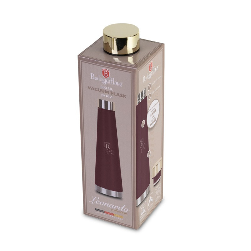 Objavte štýlový doplnok na cesty s termoskou Leonardo Collection . Spája elegantný dizajn, praktickosť a kvalitné spracovanie - ideálna voľba pre každodenné použitie doma, v kancelárii aj na cestách. Technické parametre: • Materiál: vnútorné telo z nerezovej ocele 18/10 s matným práškovým lakovaním – odolné a hygienické prevedenie • Objem: 0,4 l – kompaktná veľkosť ideálna do kabelky, batohu alebo držiaka v aute • Farba : matná bordó – elegantná kombinácia s moderným nádychom • Tepelná izolácia: – Teplé nápoje: až 8 hodín – Studené nápoje: až 12 hodín • Konštrukcia: dvojitá stena – udrží teplotu a zabraňuje kondenzácii • Praktickosť: ľahko sa čistí, pohodlne sa používa • Balenie: polovičná darčeková krabička - vhodné ako elegantný darček Leonardo Collection – praktická elegancia, ktorá vás odprevadí každý deň.