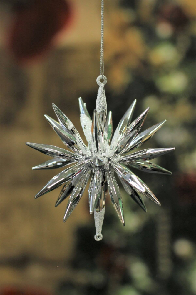 Závesná ozdoba s trblietkami - strieborná hviezda je krásnym a efektným prvkom dekorácie vášho vianočného stromčeka alebo okolia, ktorý samostatne alebo v kombinácii s inými dekoráciami okamžite dodá jemnú eleganciu luxusu.