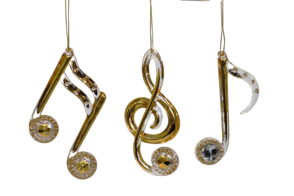 Dodajte vášmu vianočnému stromčeku luxus a eleganciu s touto krásnou vianočnou ozdobou v tvare hudobných nôt. Detailne spracovaná ozdoba je veľmi pekným doplnkom na váš vianočný stromček a zároveň je milým darčekom pre vašich blízkych, ktorí milujú hudbu. 3 - kusy v balení