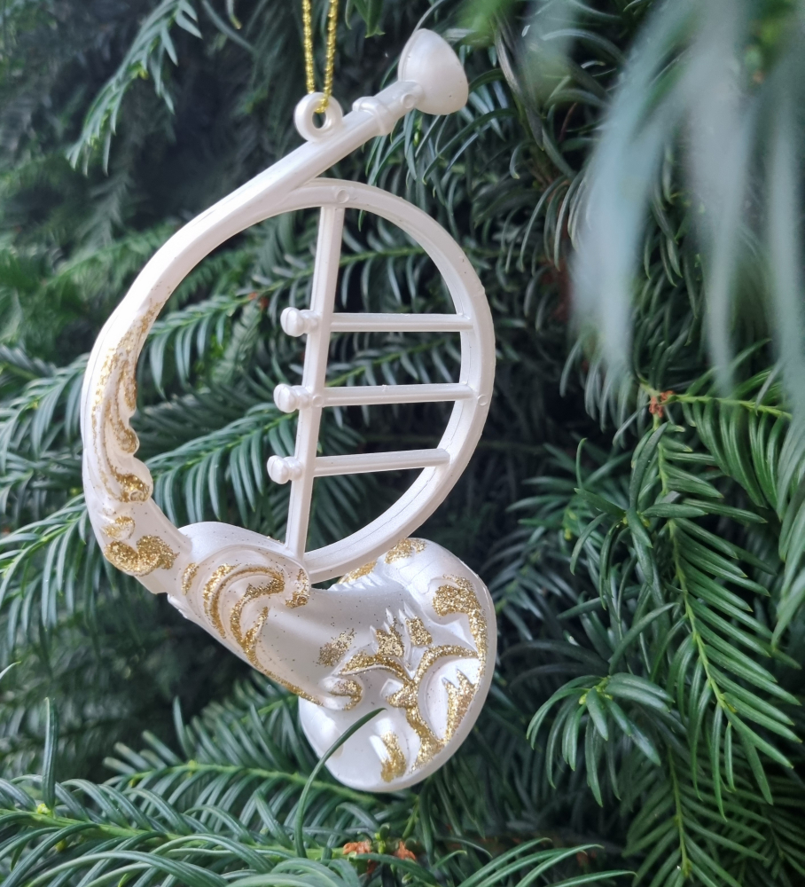 Dodajte vášmu vianočnému stromčeku luxus a eleganciu s touto krásnou vianočnou ozdobou v tvare trubky. Detailne spracovaná ozdoba je veľmi pekným doplnkom na váš vianočný stromček či veniec.