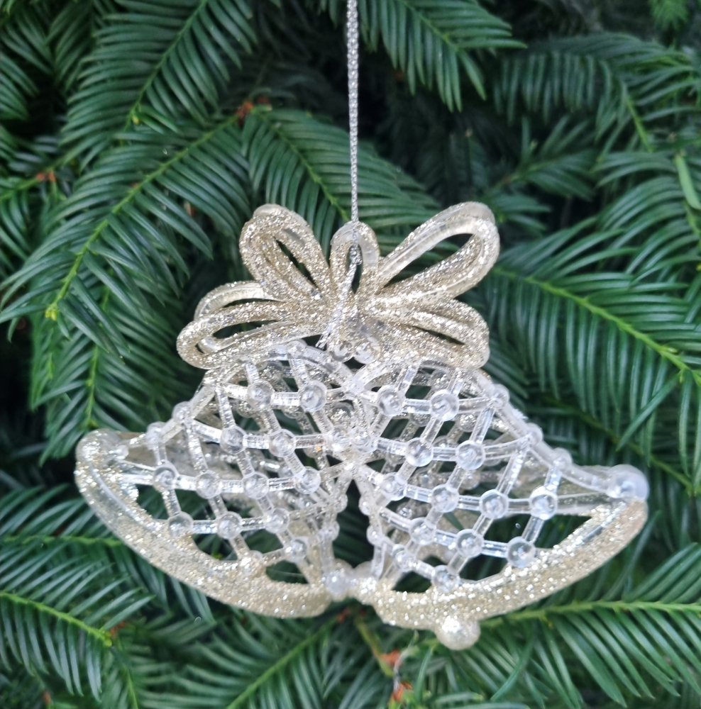 Krásna vianočná dekorácia zvončeky ozdobí váš domov. Dodajte vášmu vianočnému stromčeku luxus a eleganciu s touto krásnou vianočnou ozdobou v tvare zvončekov , je veľmi pekným ligotavým doplnkom na váš vianočný stromček, veniec alebo girlandu.